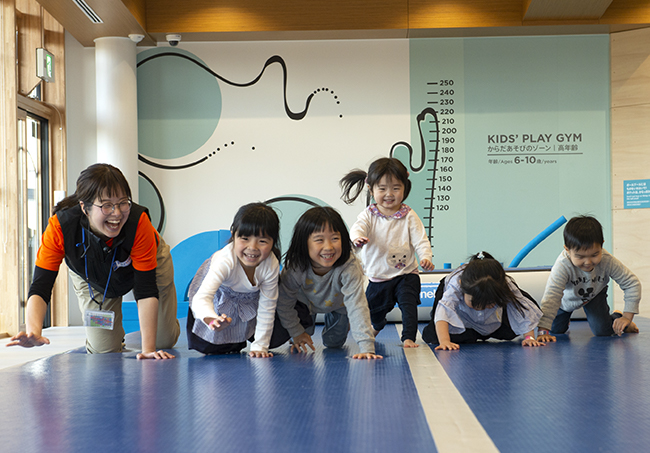 おうちにはないダイナミックな運動遊具や広々とした空間に、子どもたちも夢中に。屋外で走り回るのは少し危険な季節だからこそ、涼しい室内で思いきりからだを動かしましょう。プレイリーダーやはじめて会ったお友だちと息をあわせて、いっしょに遊ぶ経験は、きっと素敵な夏の思い出に。