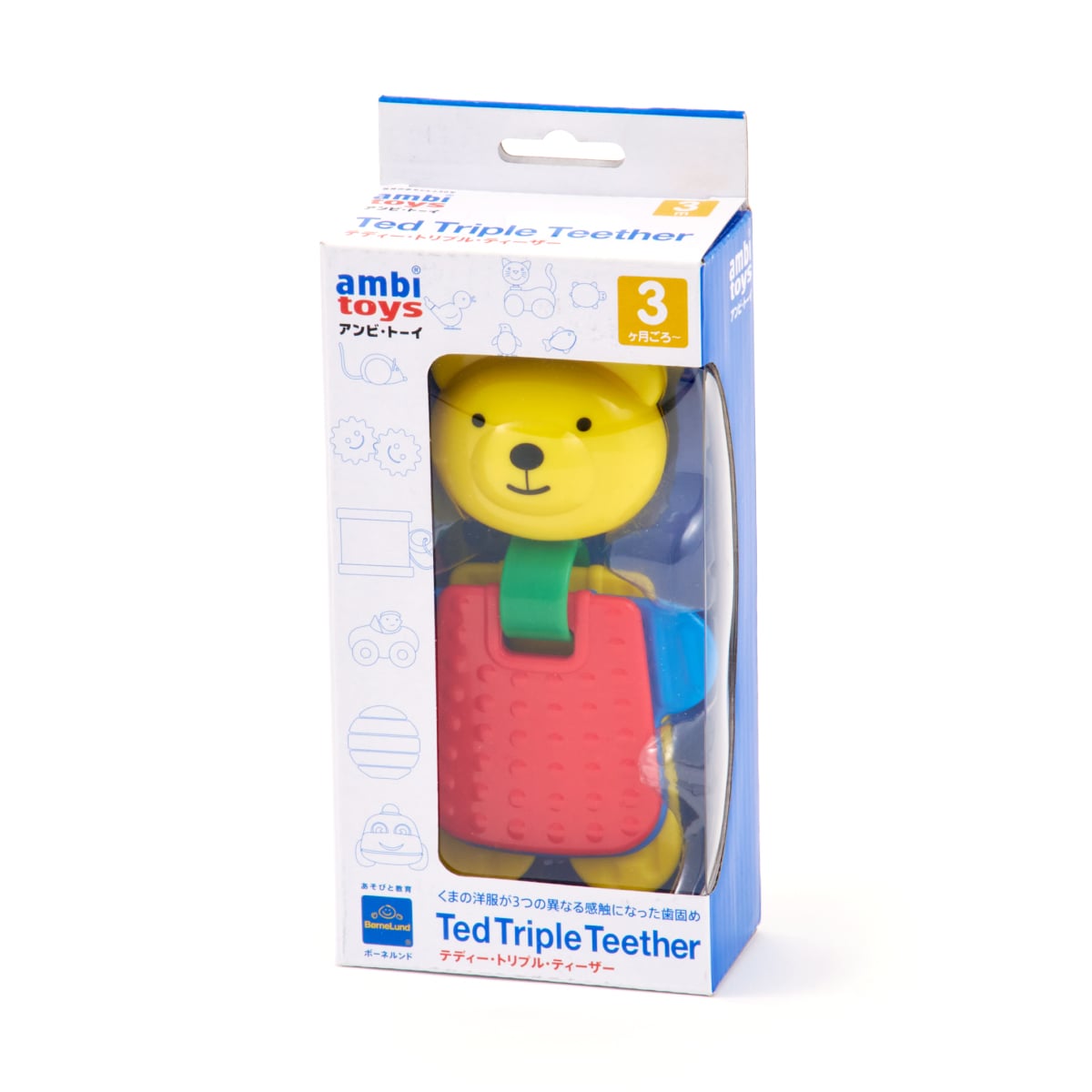 アンビ・トーイは、オランダで1960年代に誕生して以来、世界中で愛され続けています。同社は、赤ちゃんが生まれてから2歳頃までの発達が人生において最も大切なものと考え、眠って、食べて、泣いて、また眠るだけの赤ちゃんの毎日に、少しずつ五感や感性を刺激する道具との触れ合いをつくり出してくれます。安心感を生む優しい手触りと丸いフォルム、視力が整っていない赤ちゃんでも識別できる強くシンプルで鮮やかな色、安全で手入れもしやすい素材という3点にこだわり製品を生み出しています。