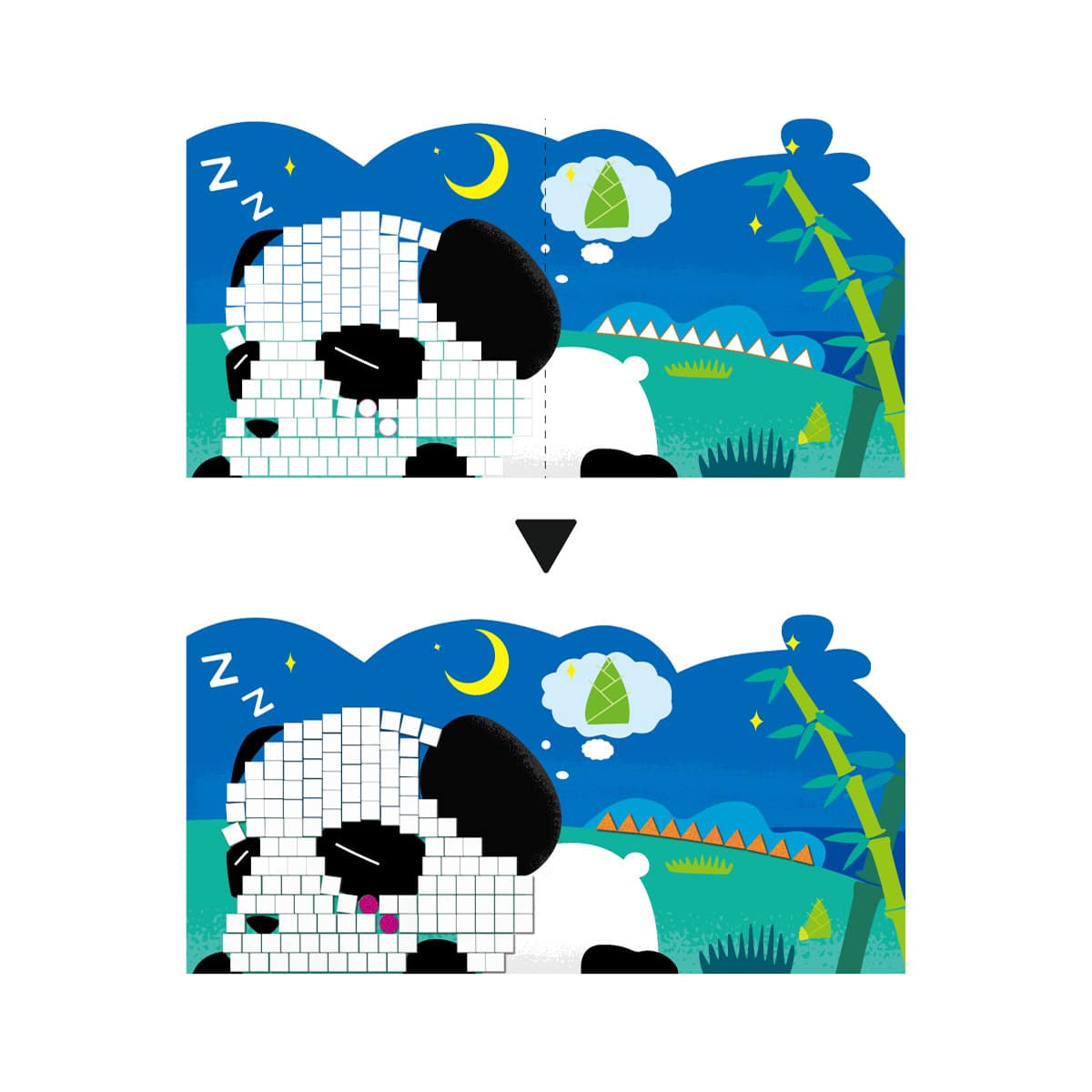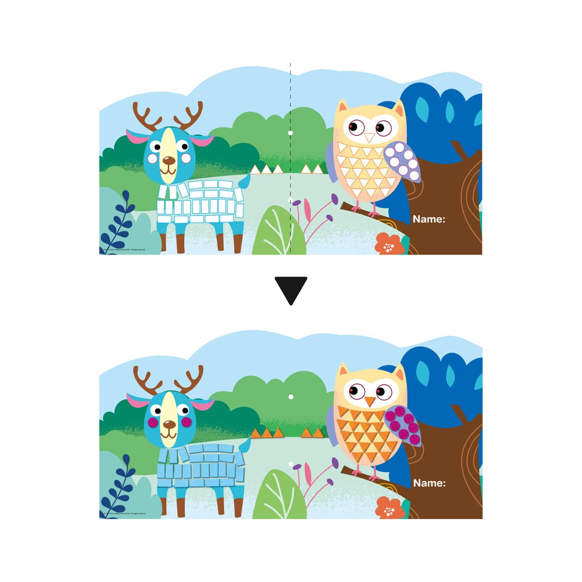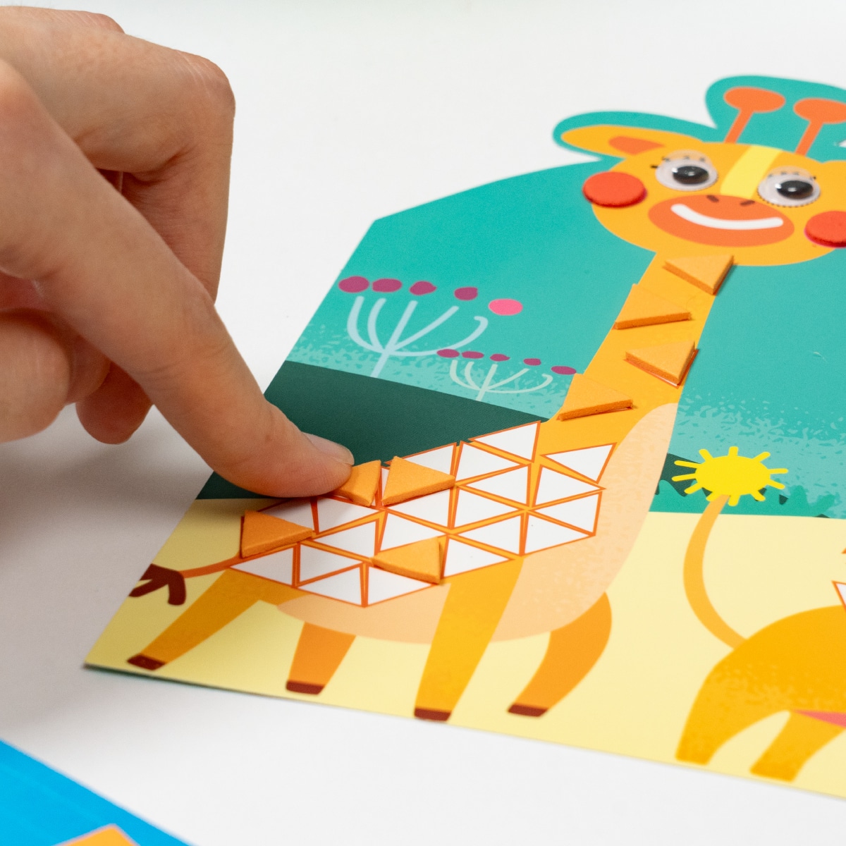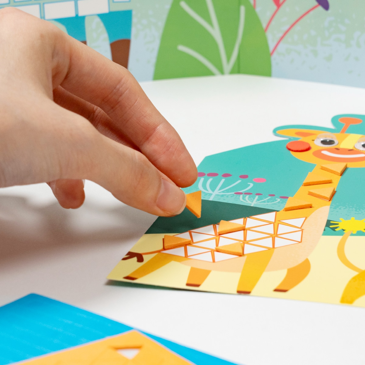 貼る場所によって向きを変えながら枠にあわせて貼っていくため、より集中力や巧緻性が求められます。枠の中にきれいに貼れたという達成感が自信にもつながっていきます。
