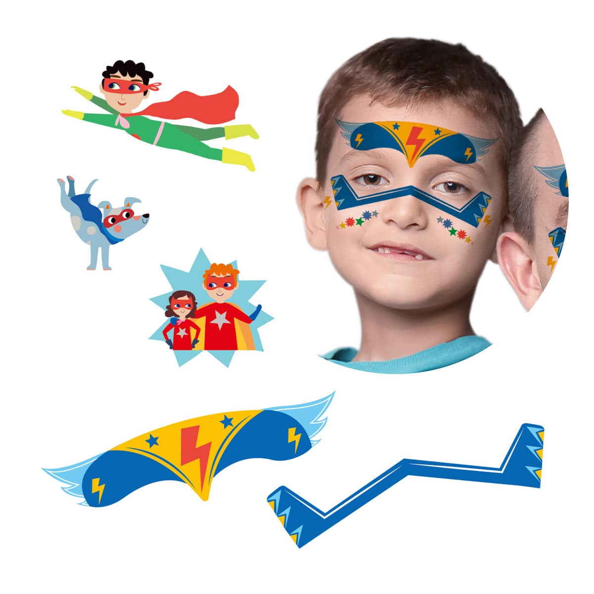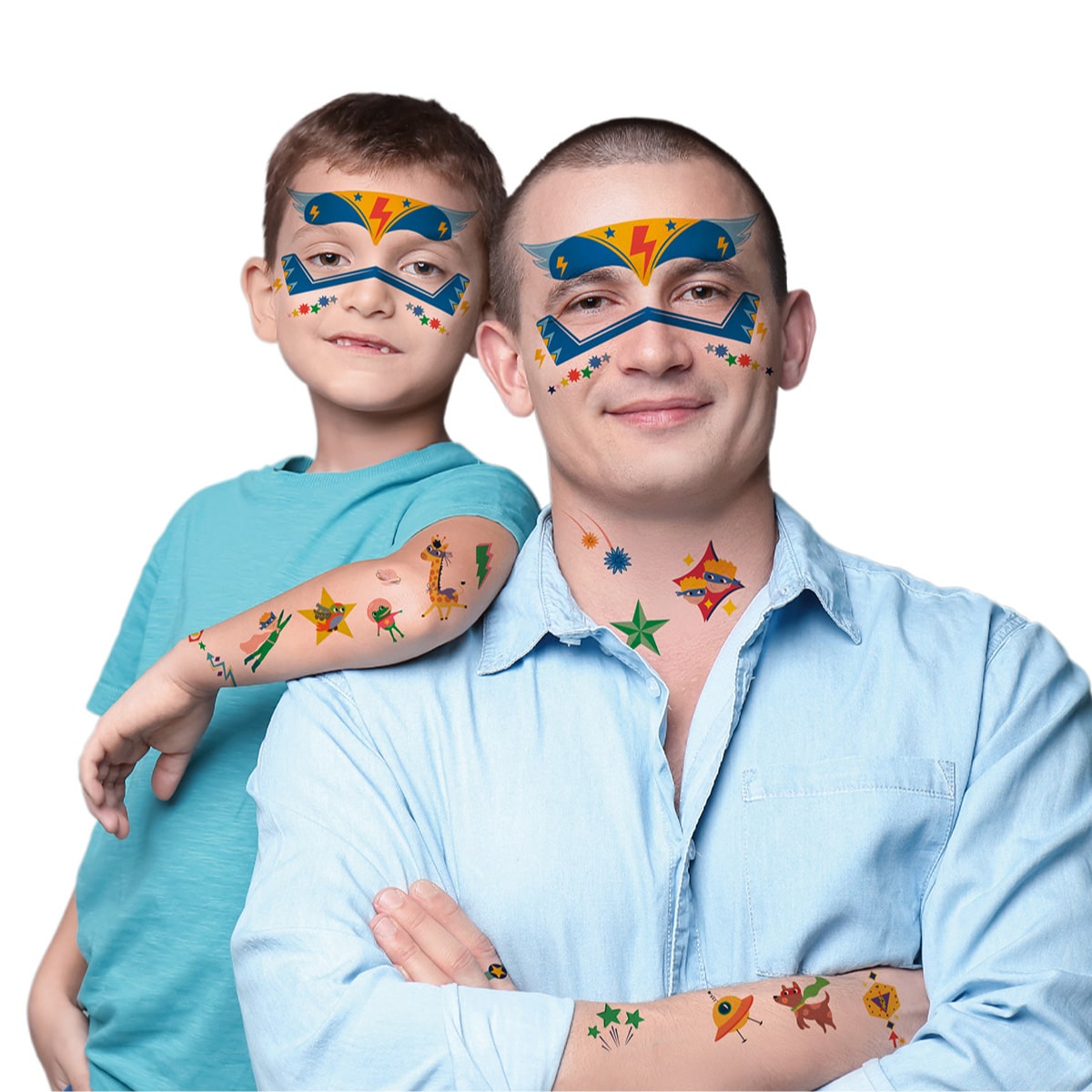 格好いいもの・強いものに憧れ、日々見えない空想の敵と戦っている小さなヒーローにぴったり!簡単に貼って落とせるタトゥー&フェイスシールです。