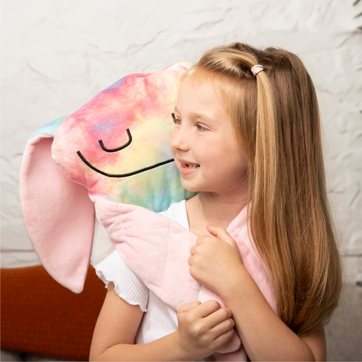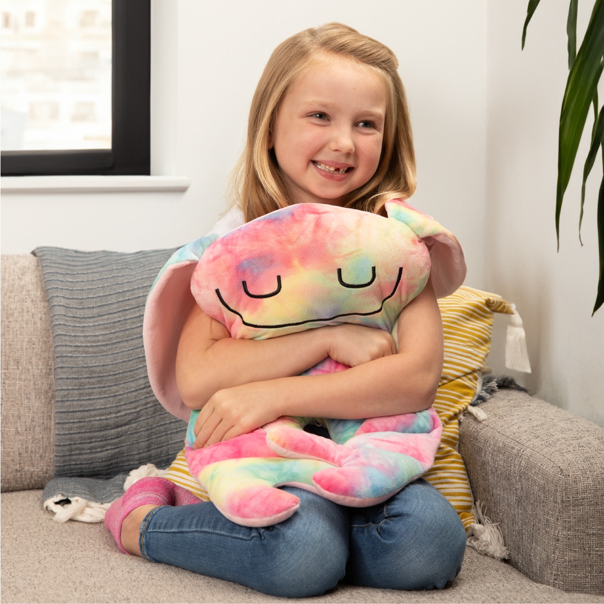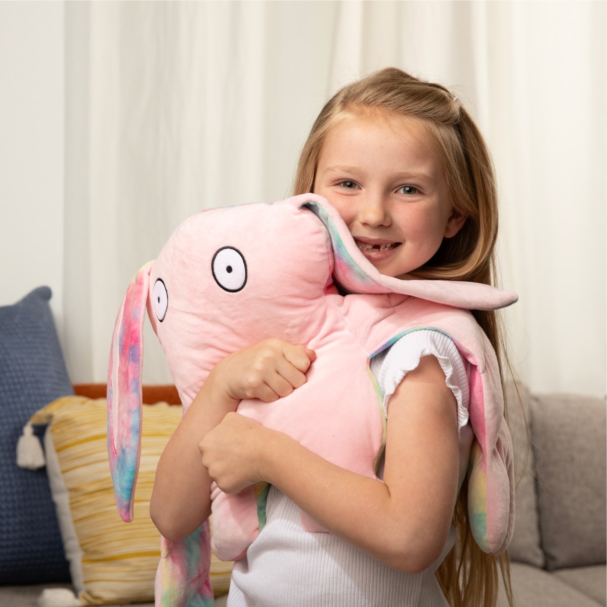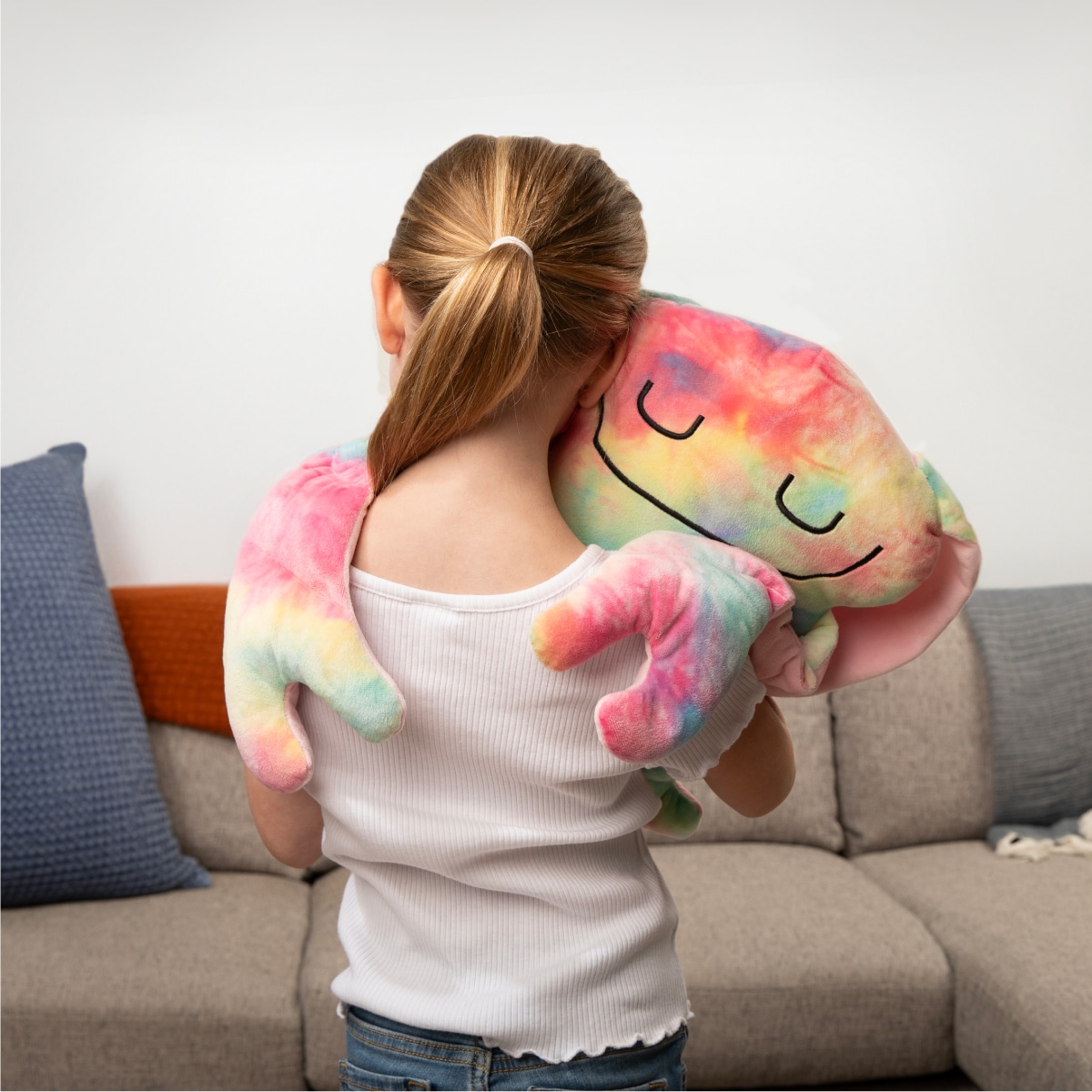 バンパスは、しっかりとした重さや、「触って安心感を得る・包む」ことにこだわってつくられた抱きぬいぐるみです。いつでも触れることで安心感を得られるセーフグッズとして、一人ひとりの不安な気持ちや感情に寄り添います。