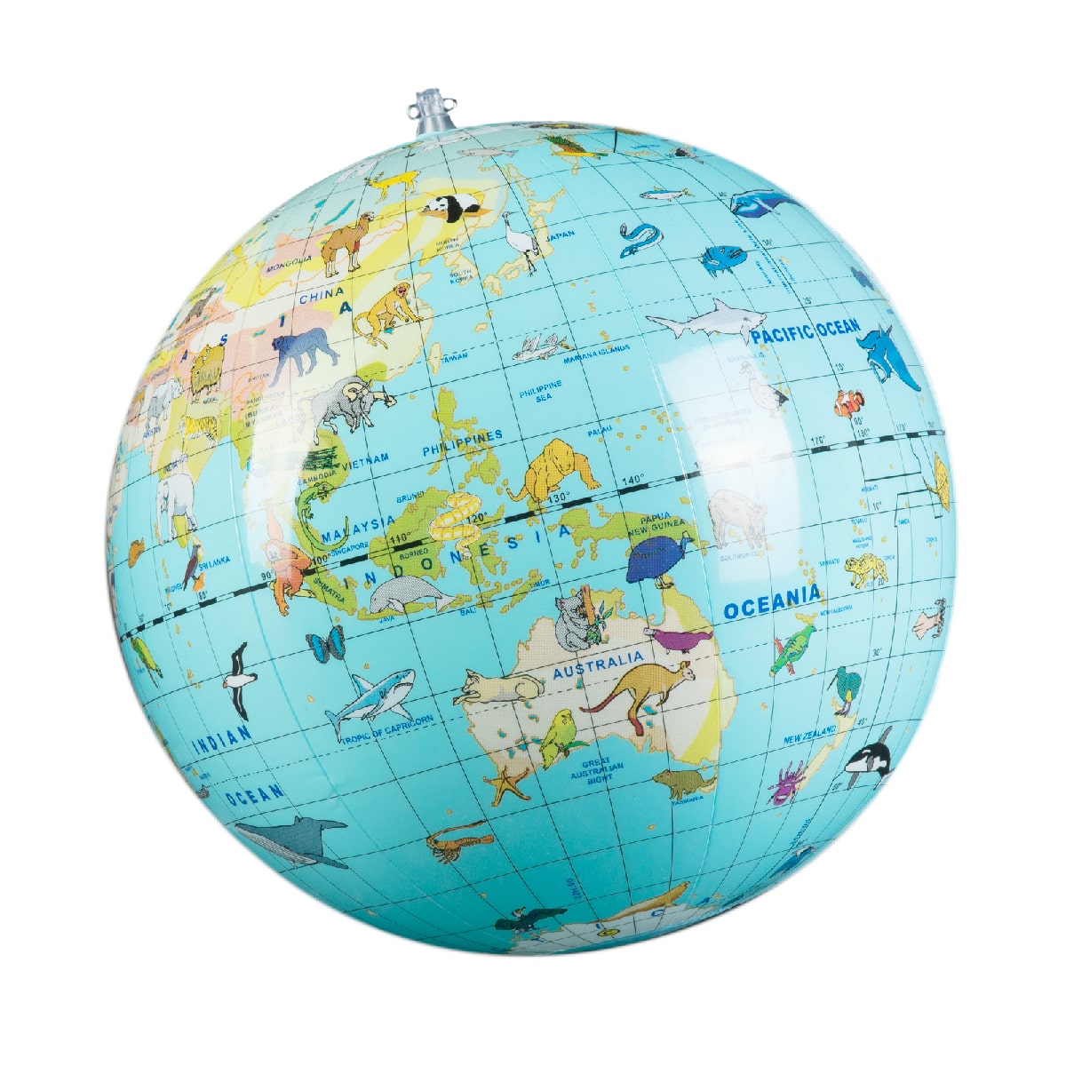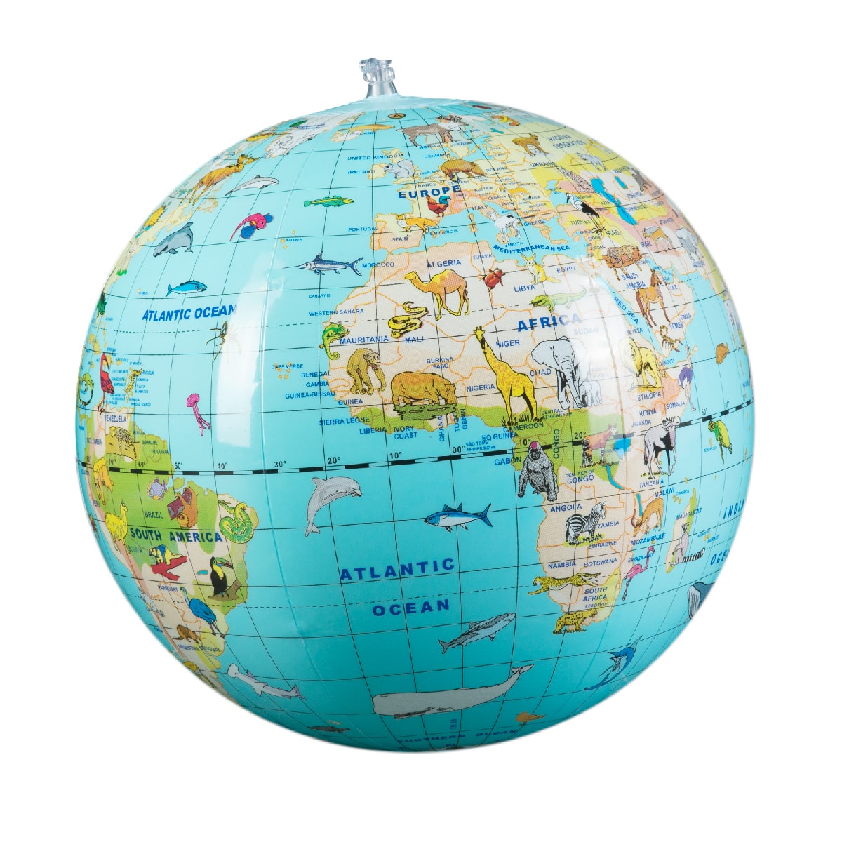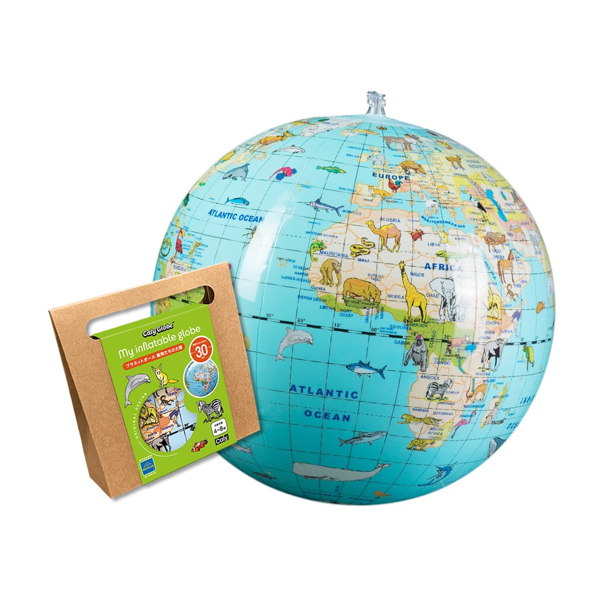 平面の地図ではわからない距離や大きさまで体感できる、遊べる地球儀!