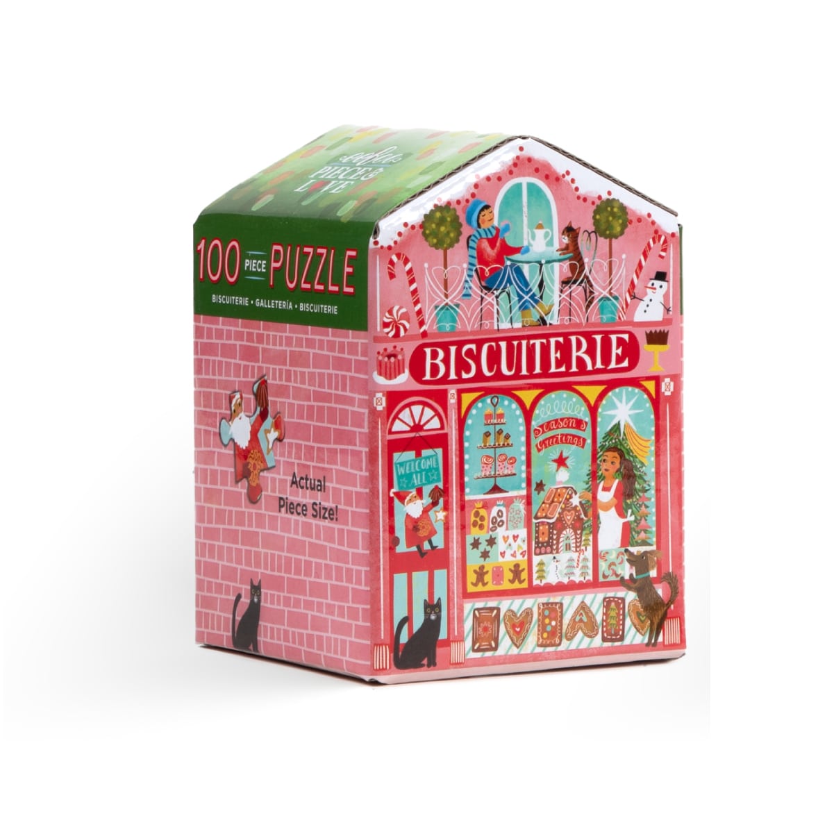 おうち型のパッケージ自体もオーナメントのようで、いくつか揃えて飾るのもおすすめ。パズルに慣れていなくても完成させられる100ピースのパズルのため、クリスマスパーティーでのプレゼント交換用にも。