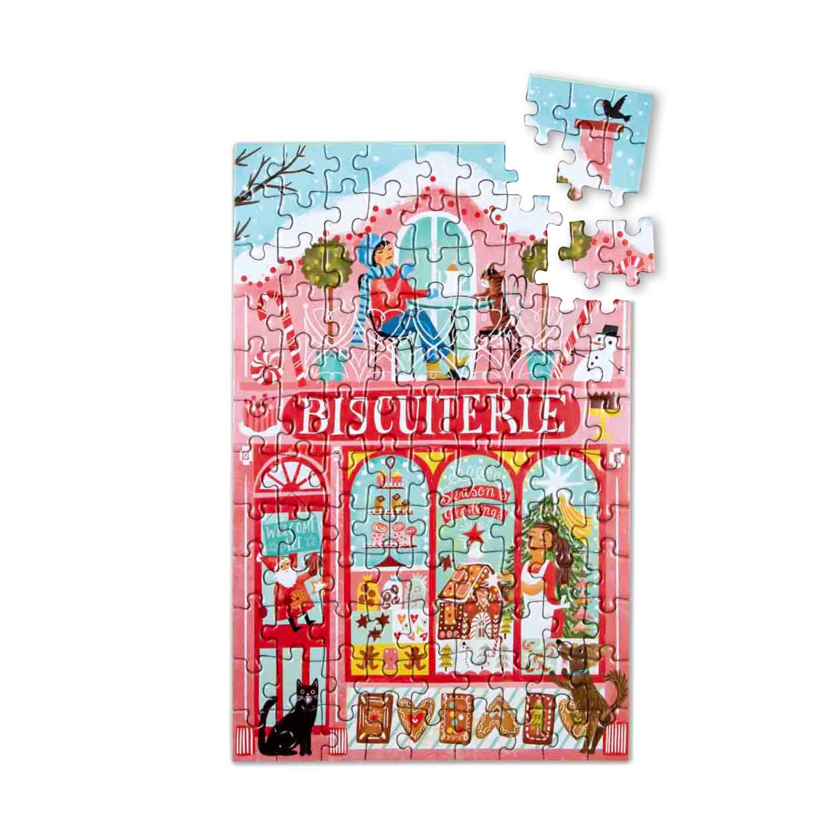 クリスマス時期の街のお店をモチーフにした100ピースのパズル。