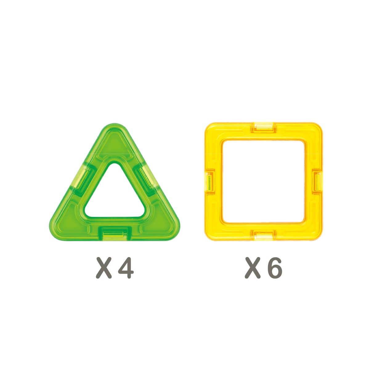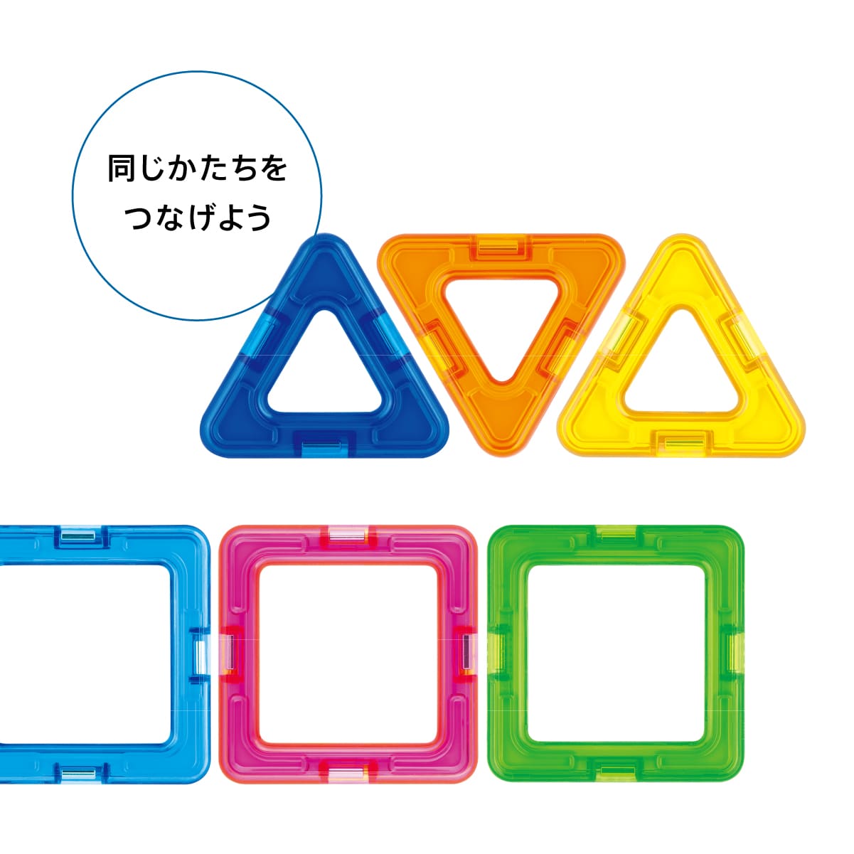 入っているのは正三角形と正方形のみ。基本の形に集中して、シンプルに遊ぶことができます。