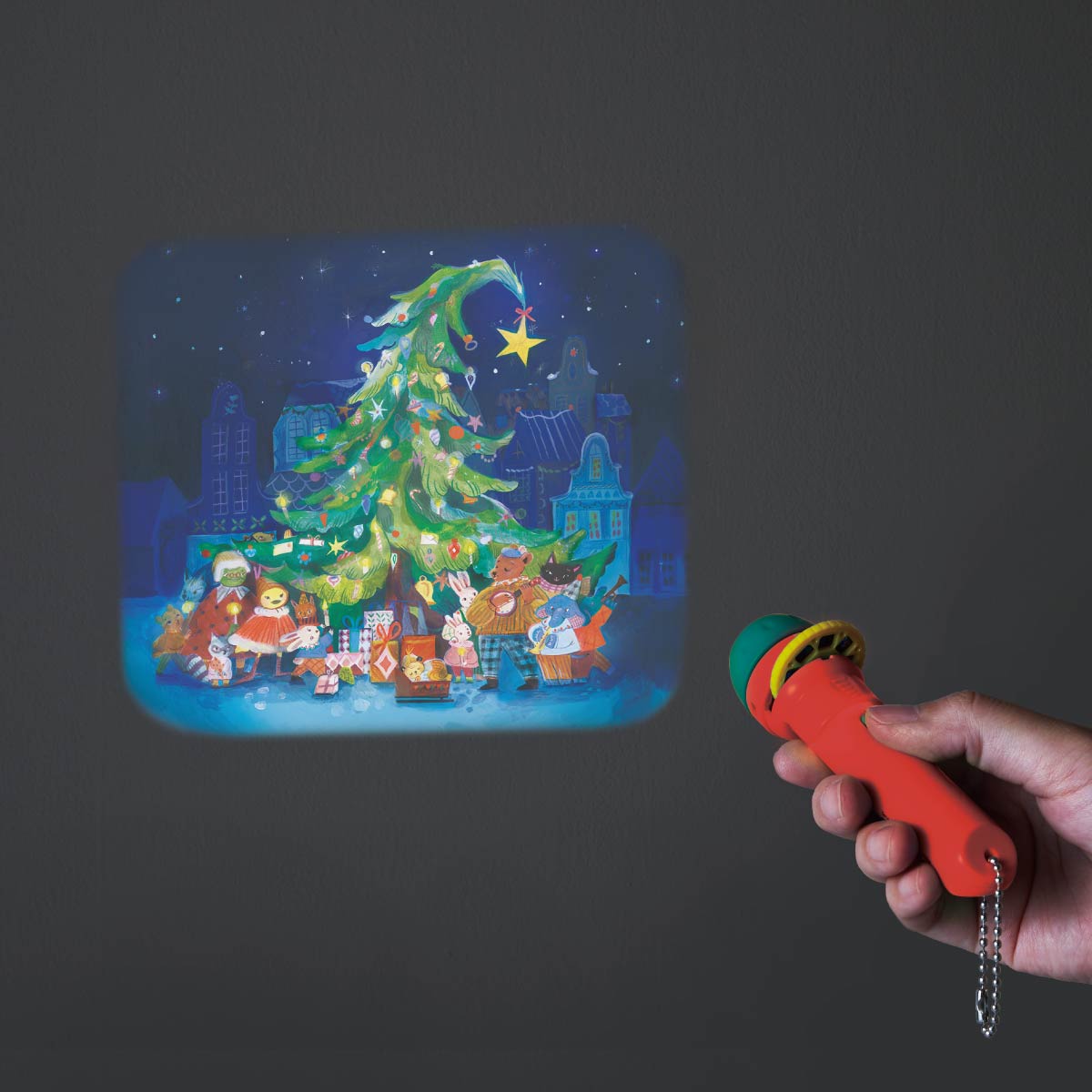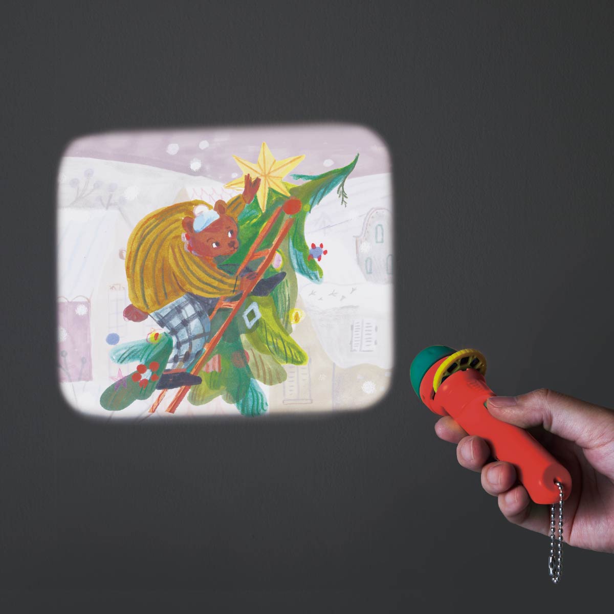 Cフィルムディスクを回すと、絵柄が変わります。壁や天井に映し出してお話をはじめましょう