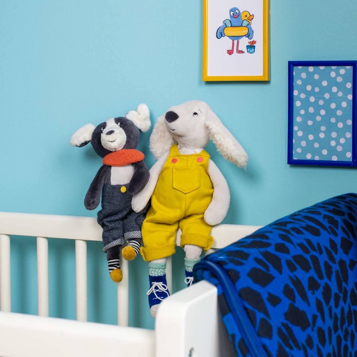 赤ちゃんが抱きしめたり、横に並べて遊ぶのにちょうどよいサイズ感と重さがあります。赤ちゃんの毎日が、ピルーと仲間たちのアパルトマンのように、笑い声と発見であふれますように――