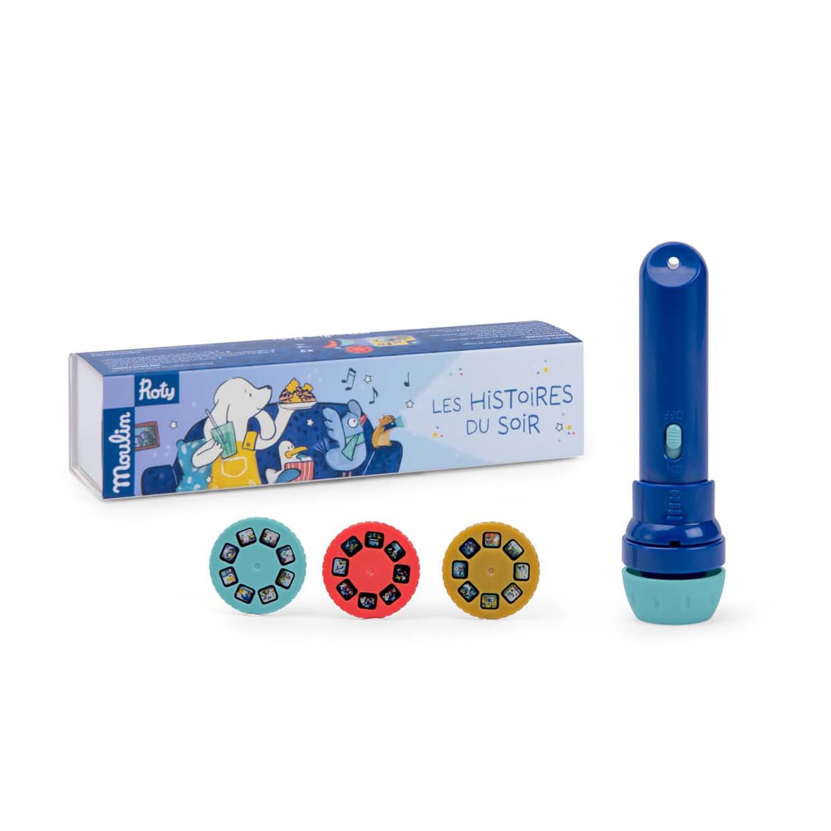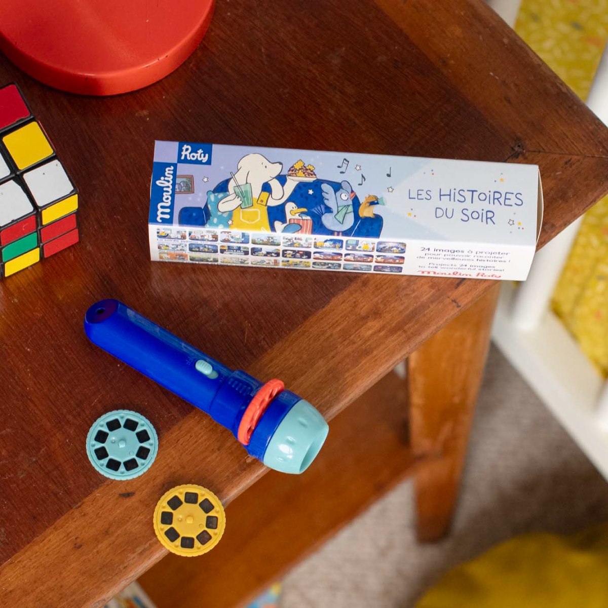 Cフィルムディスクを回すと、絵柄が変わります。壁や天井に映し出してお話をはじめましょう