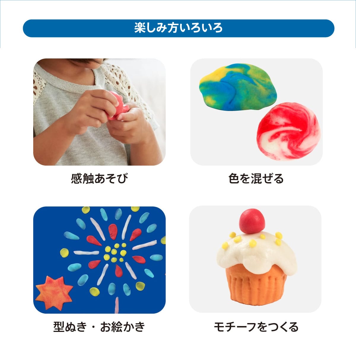 | 注意事項 | 必ず保護者の目の届くところでご使用ください。※本品は安全な材料を使用していますが、食べ物ではありません。窒息の危険がありますので誤って食べたり飲み込んだりしないで下さい。また、目などにも入れてしまわないよう十分ご注意ください。 ※手に傷、腫れ、湿疹などがある場合はご使用にならないでください。また、使用時に皮膚が赤くなったり、かゆみが生じたりした時はただちに使用を止め、症状によっては医師の診察を受けてください。 |