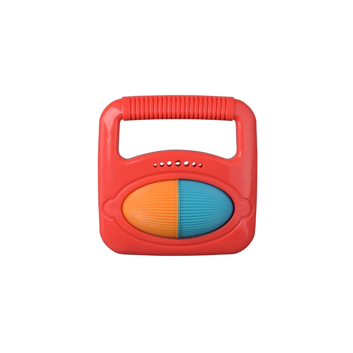 中央のローラーからギロのような不思議な音が鳴り、繰り返し鳴らしたくなるラトルです。
