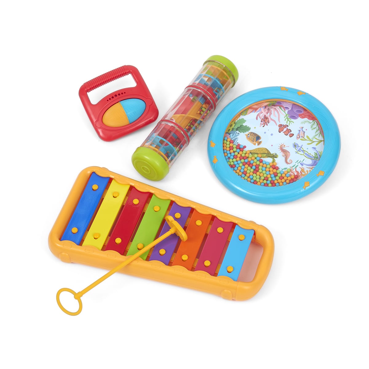 波や雨の音からメロディーまで 組み合わせても楽しめる4種の楽器セット。