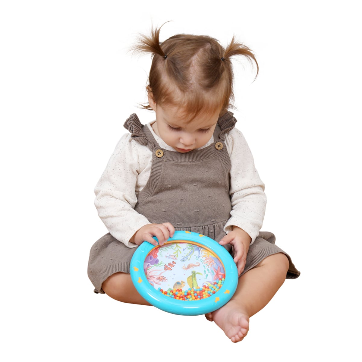 無数のビーズは雨のような心地よい音。胎内で聞こえていたママの血流の音に似ていて、安心できる音色です。