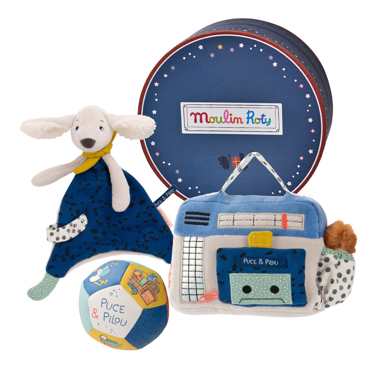 赤ちゃんが生まれたらはじめに揃えておきたいあそび道具が3点入ったギフトセットです。 おしゃぶりタオルとオルゴール、ボールを揃え、生まれたばかりの頃から成長に寄り添いながら、日々のあそびをやさしく応援します。