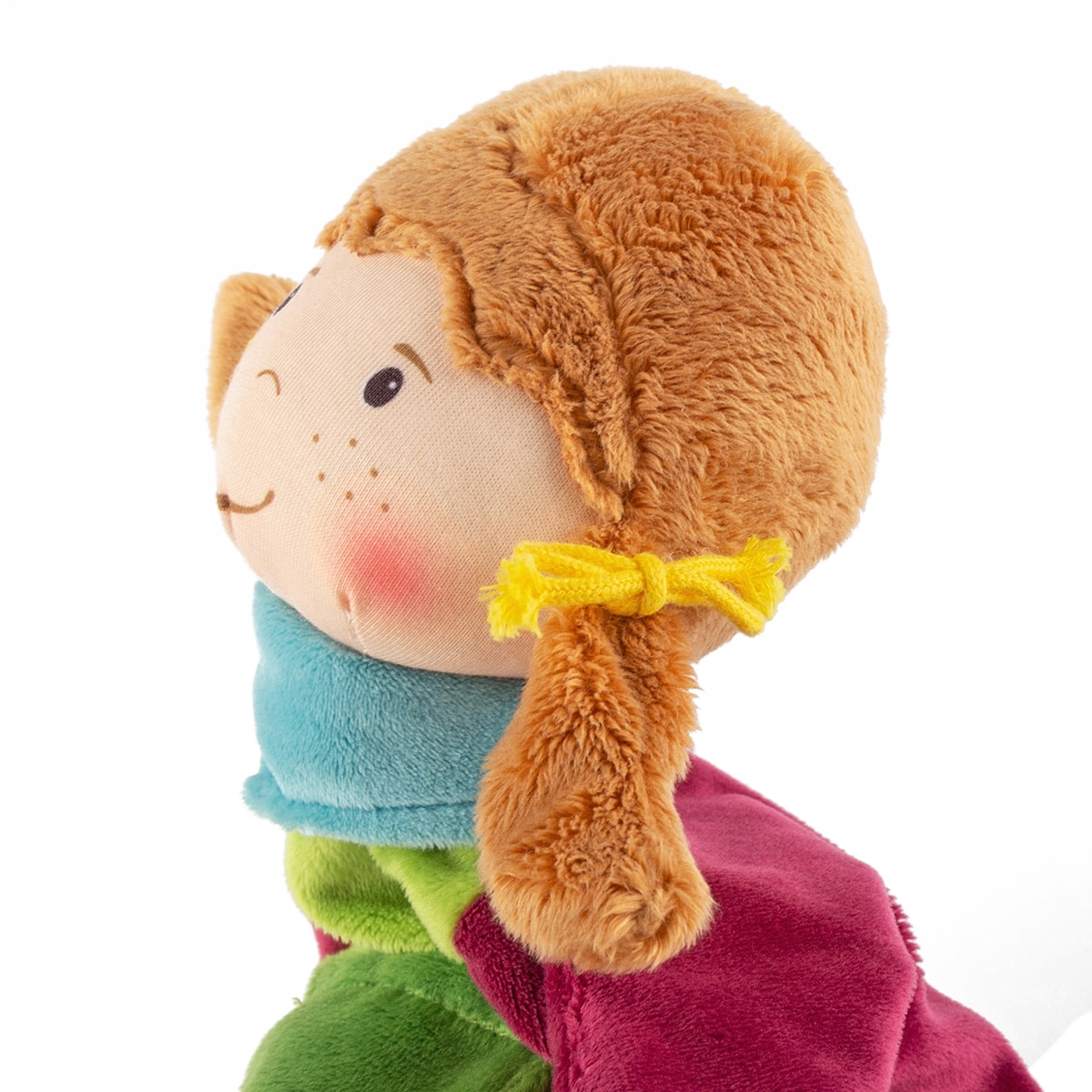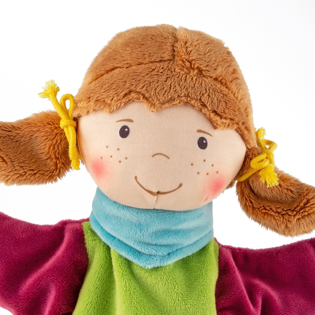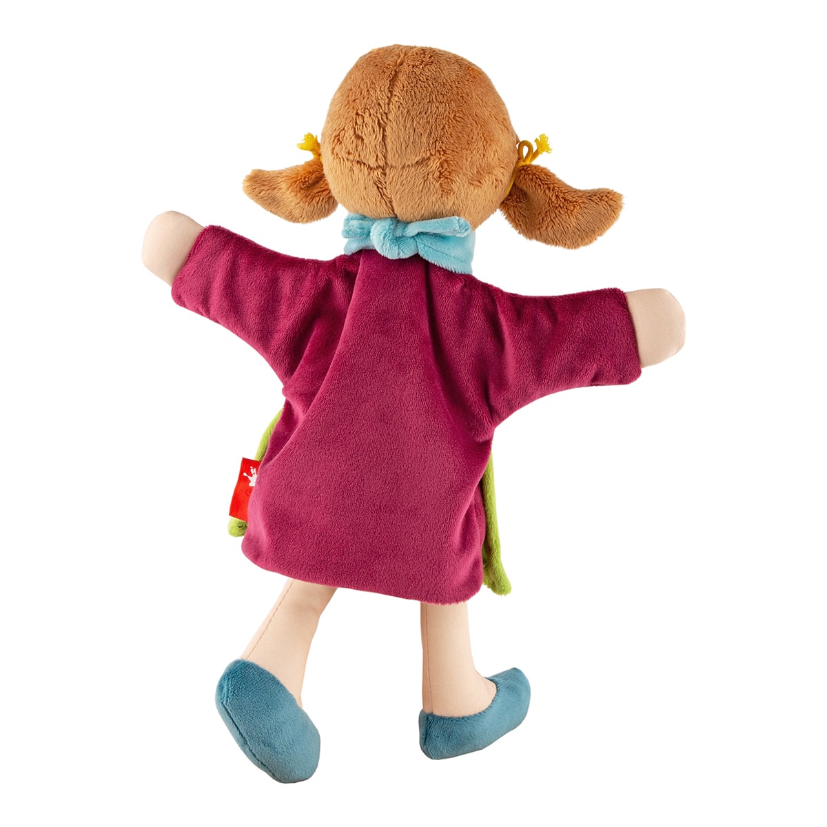 歩いたり、座ったりする様子も再現できる、足も付いているのが特徴のハンドパペット。人形の体全体を表現して遊ぶことができます。