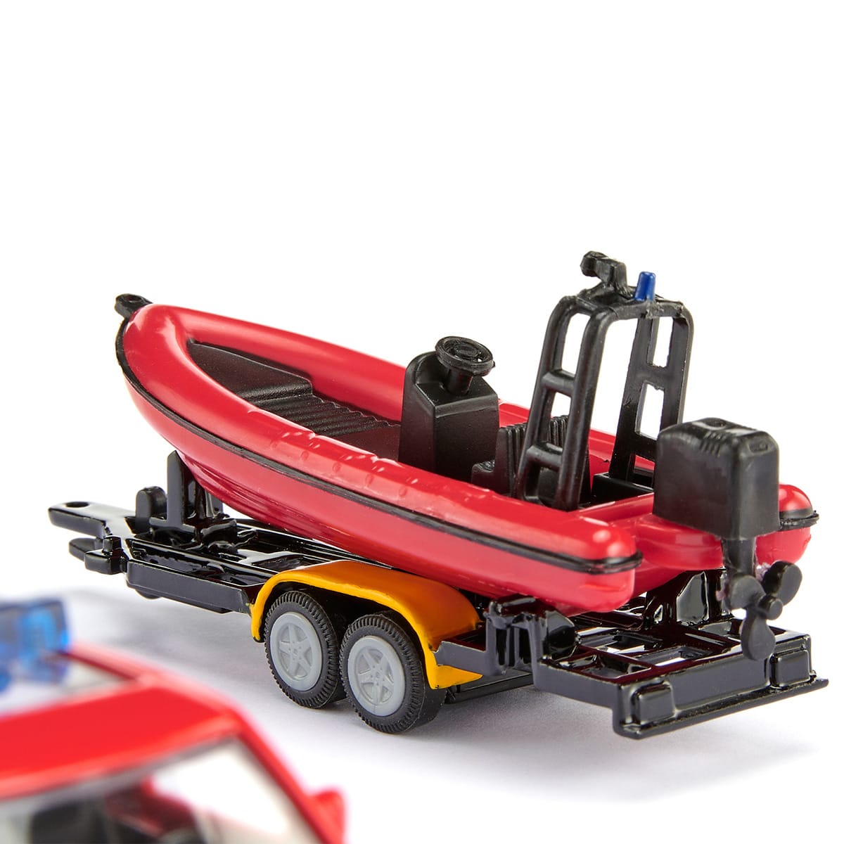 険しい山々や足場の悪い道などあらゆる地形での過酷な任務でも走りきる馬力があり、走行困難な地形での救助活動でも大活躍!黄色のアクセントがついた消防車の赤い塗装と、屋根の青い警光灯が目を引くデザインで、透明ガラスのサンルーフからも車内を覗くことができます。sikuの他のトレーラー モデルと組み合わせることができます。