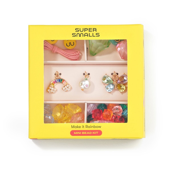 約65cmのゴムひもが入っていて、ネックレス1つと、ブレスレットが2個作れる程度の分量のビーズが入っています。 テーマごとの個性あふれるチャームとカラフルなクリアビーズの組み合わせは、どのキットを選ぶか迷ってしまうほど。