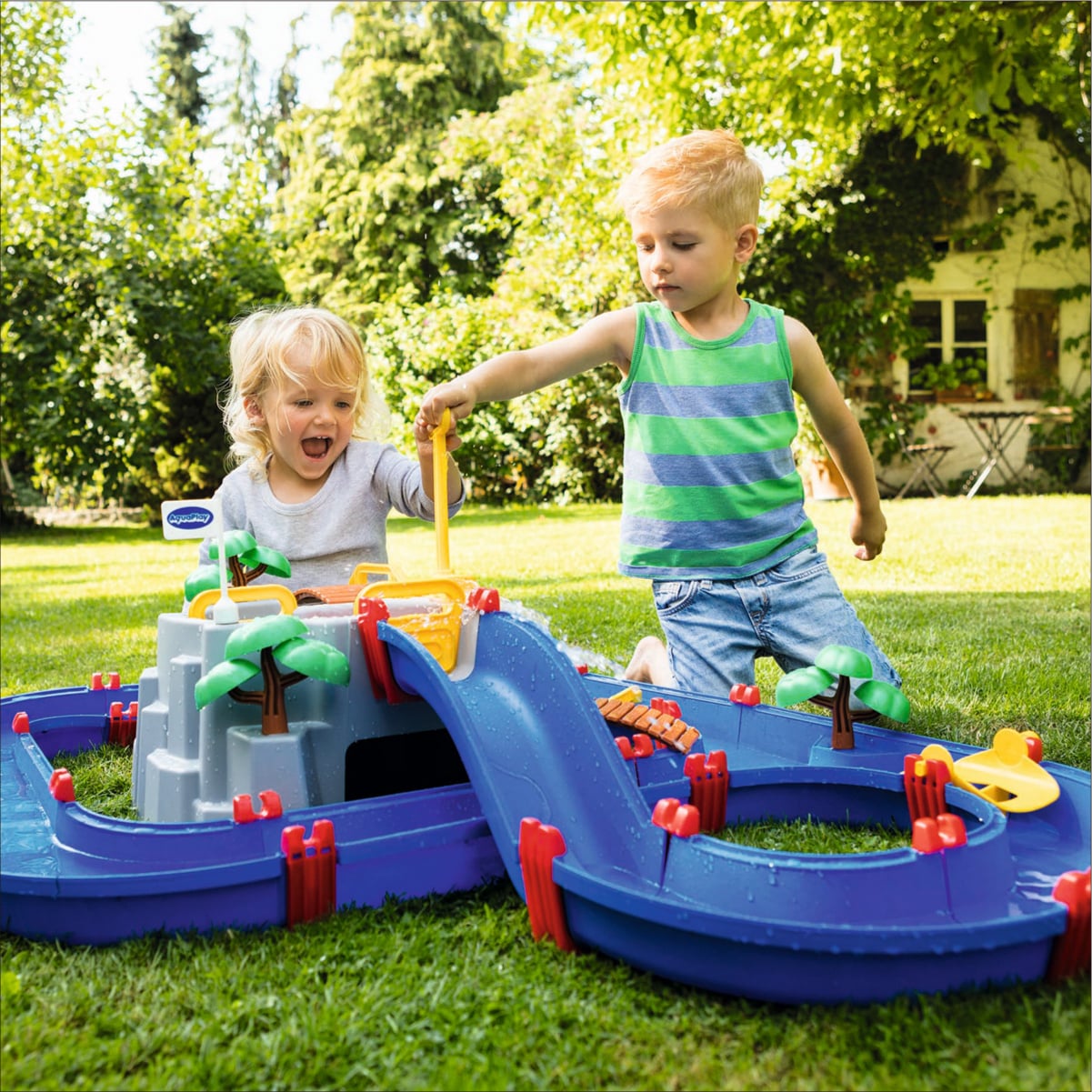 ダイナミックな水遊びが楽しめるセット。高さのあるカナルロックシステムから一気に坂道を流れ落ちるボートのスピーディーな動きに、子どもも大人も思わず夢中に。