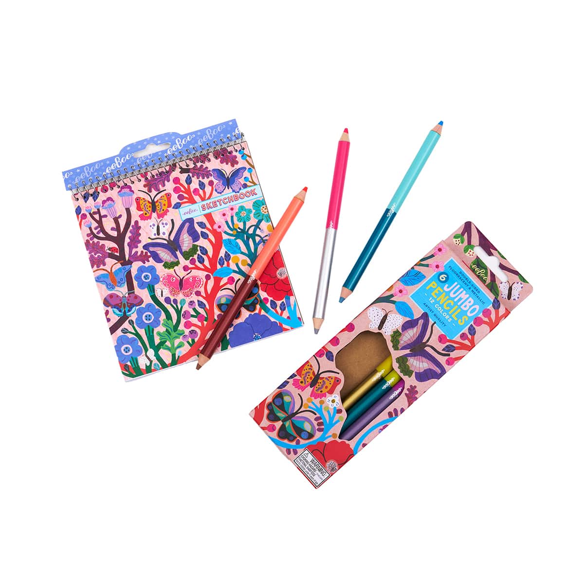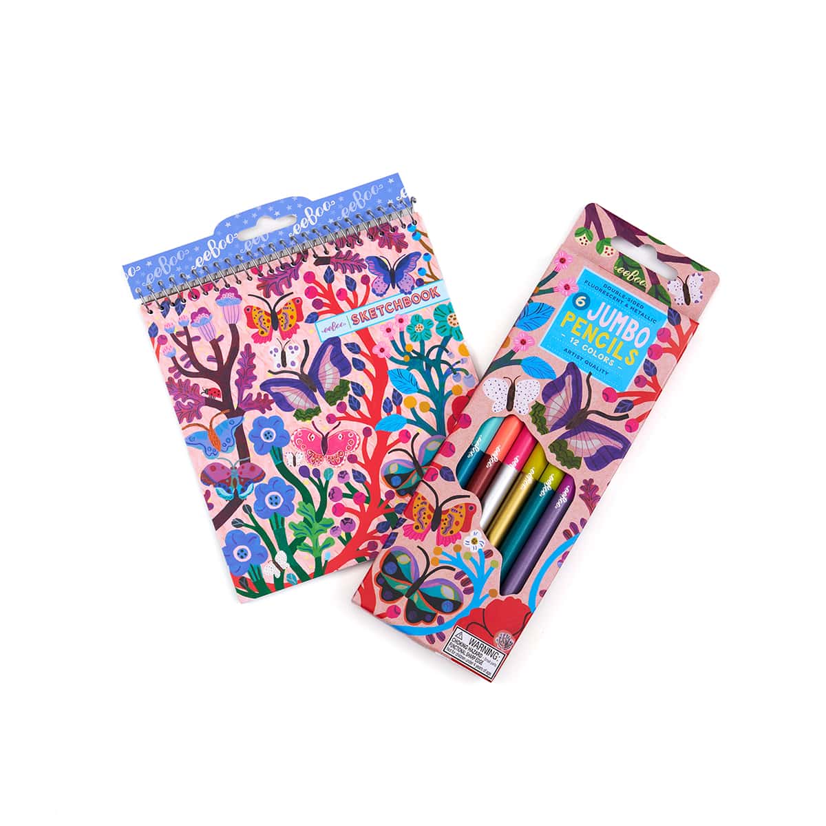 スケッチブックと色鉛筆のセット。お絵描きが大好きな子や、文房具好きの大人の方へのギフトにもおすすめです。