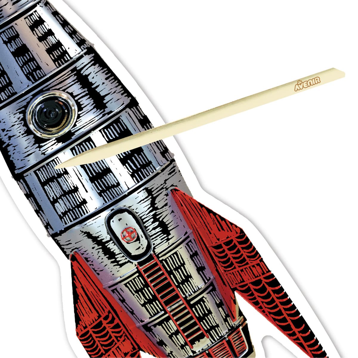 黒い部分を削ると、宇宙船や惑星のモチーフが、まるで本物のような質感の下色とともに現れるスクラッチアート。削る範囲を調整することで、思い描くリアルな宇宙の世界観を表現できる楽しさがあります。 どこまで黒い部分を削るかという選択もまた面白く、より本格的なデザインに触れたい頃にぴったりのクラフト遊びです。