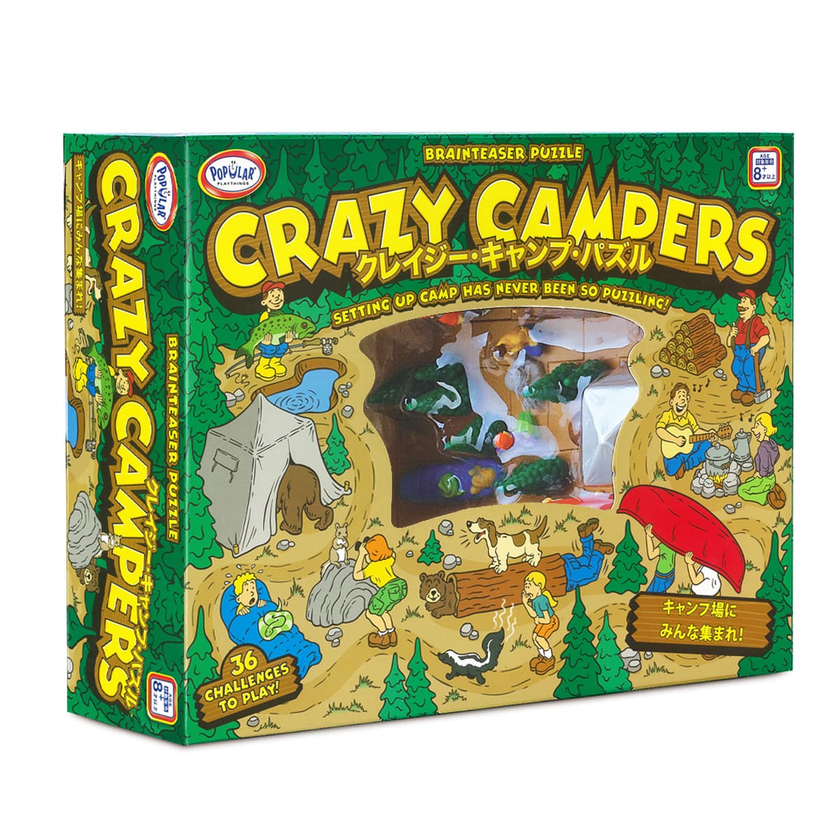 11ピースのユニークなキャンパー達の型はめパズルです。異なる形のピースをつなぎ合わせ、1枚の土台にはめこみキャンプ場を完成させましょう。