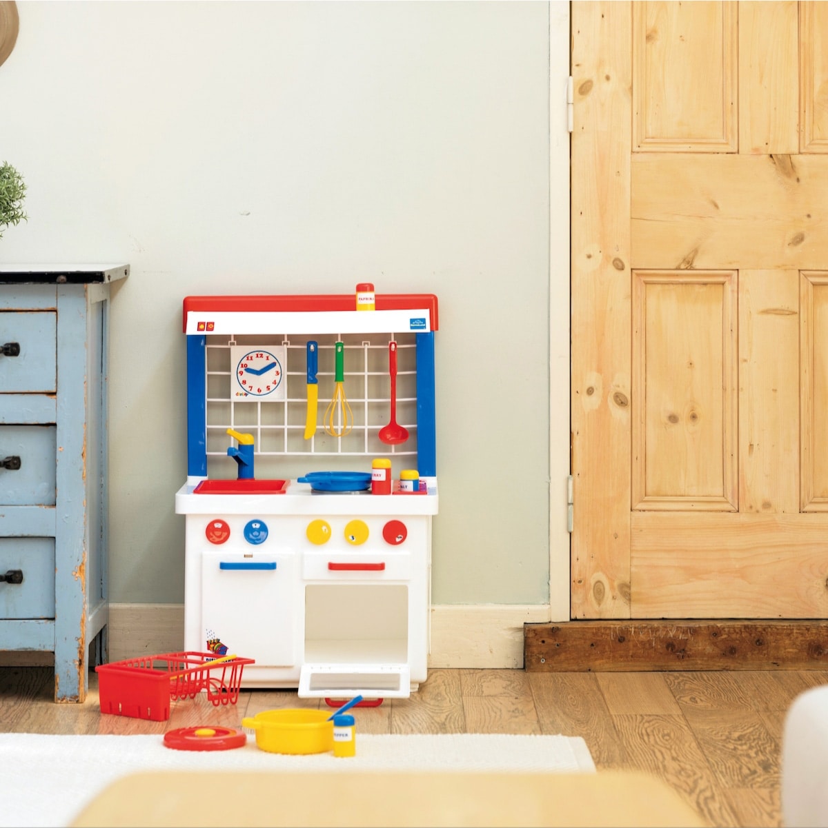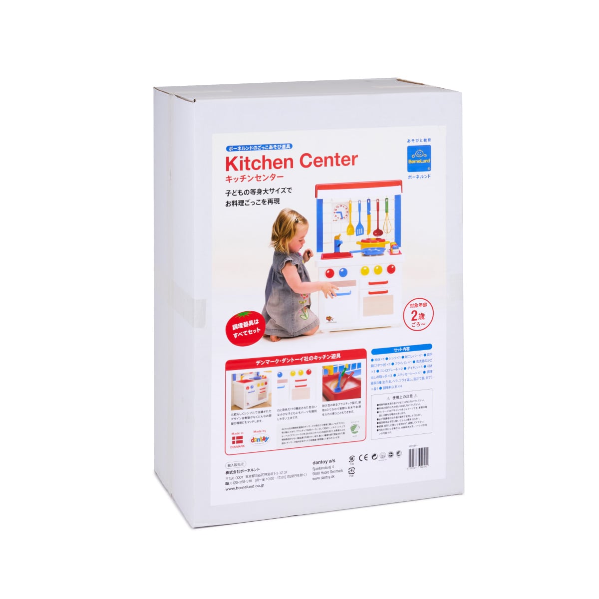 25年以上ロングセラー、シンプルなつくりのキッチンセンターは、世界中の子ども部屋にあうようにとデザインされました。身近な人の真似をするようになる1・2歳頃のお子さまにとって本物に近い感覚で遊べる子どもの等身大サイズで、お料理に必要なお鍋、フライパン、調味料入れなど、すべてセットに。女の子はもちろん男の子にも大人気です。