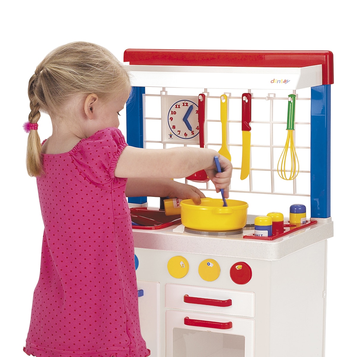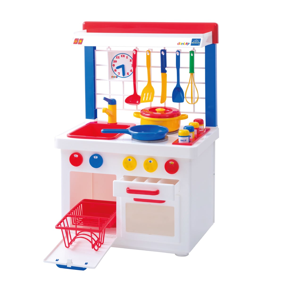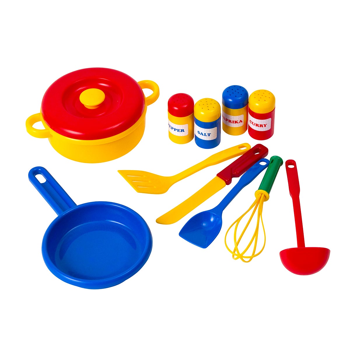 2歳頃の子どもが等身大で使うことができるサイズ。お料理に必要なお鍋・フライパン・調味料入れと、すべてセットです。性別関係なく人気です。