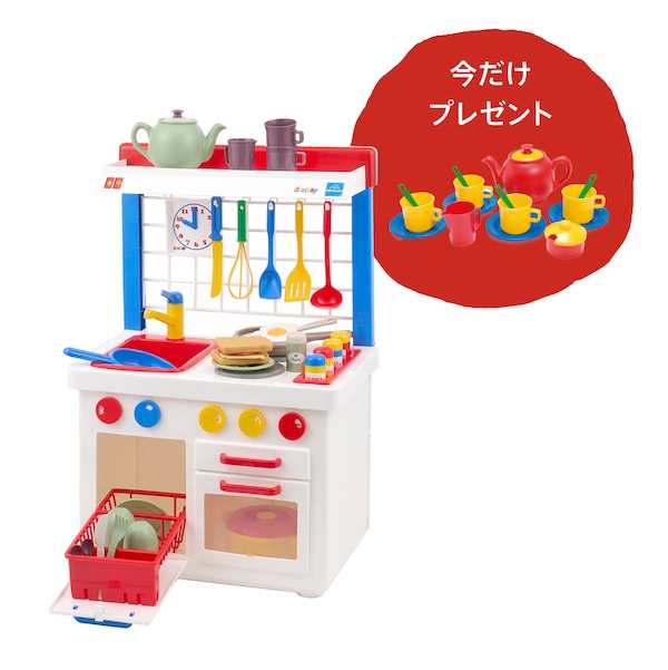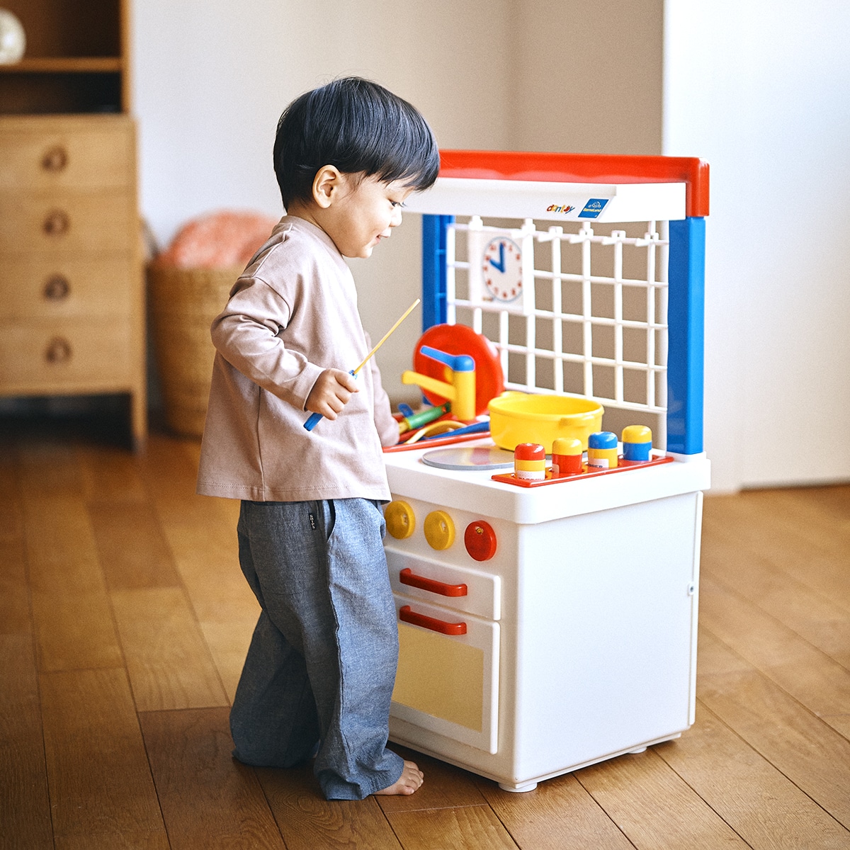 「自分もまねしたい、同じことをしたい」という憧れから、自然におままごと遊びをはじめる2歳頃に。そんな子どもの本能を刺激し、あそびのなかで日常生活の習慣や社会性を身に付けていきます。等身大サイズで本物そっくりなので、「ママやパパと同じようにできた」という満足感からくり返し夢中になって遊びます。食器や食べ物とセットで、食後にお皿を洗ってしまったりとごっこ遊びの幅も広がり、親子やお友だちと遊びながら、役割意識や協調性・コミュニケーション力を育みます。