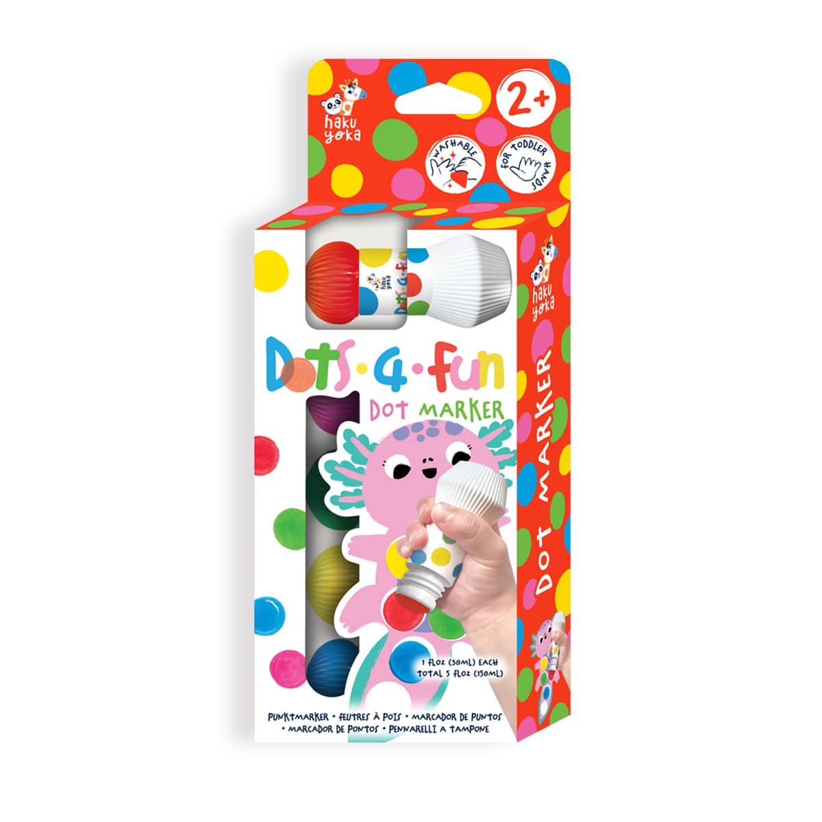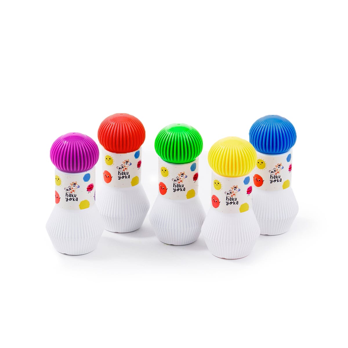 小さな手でもグーで握りやすく、ポンポンと押すと丸が描ける水性スタンプマーカーです。