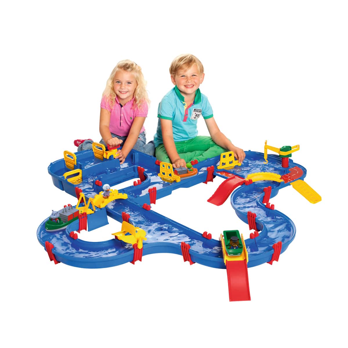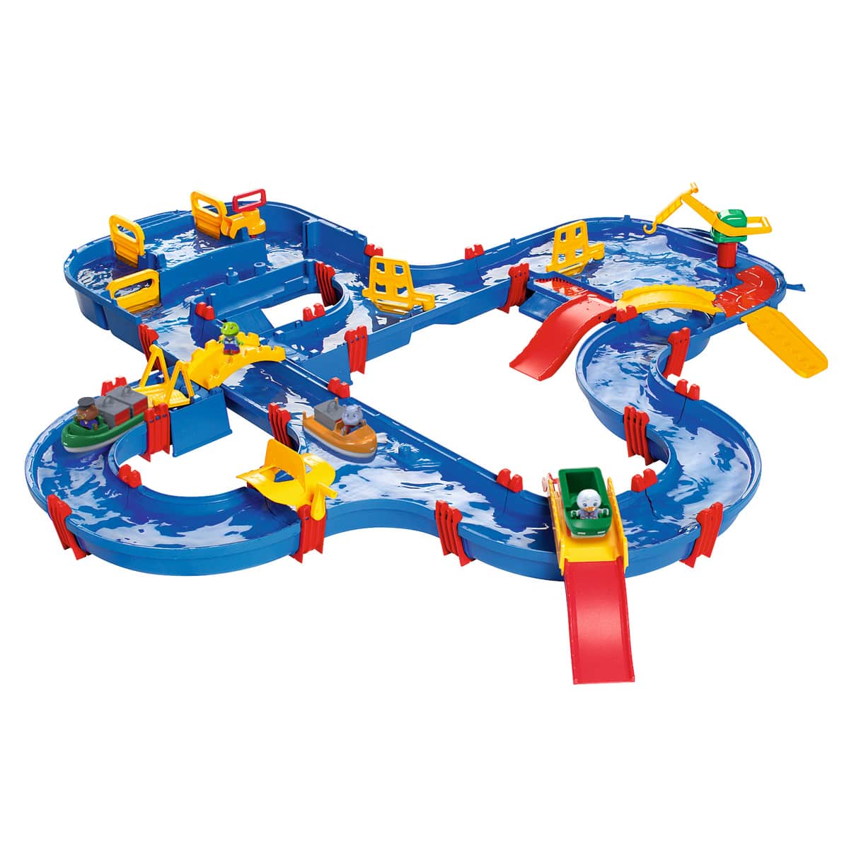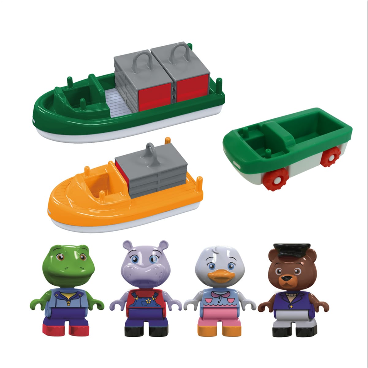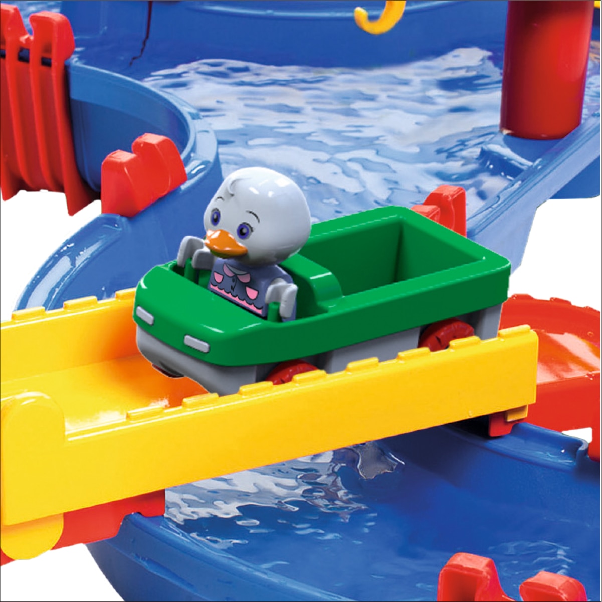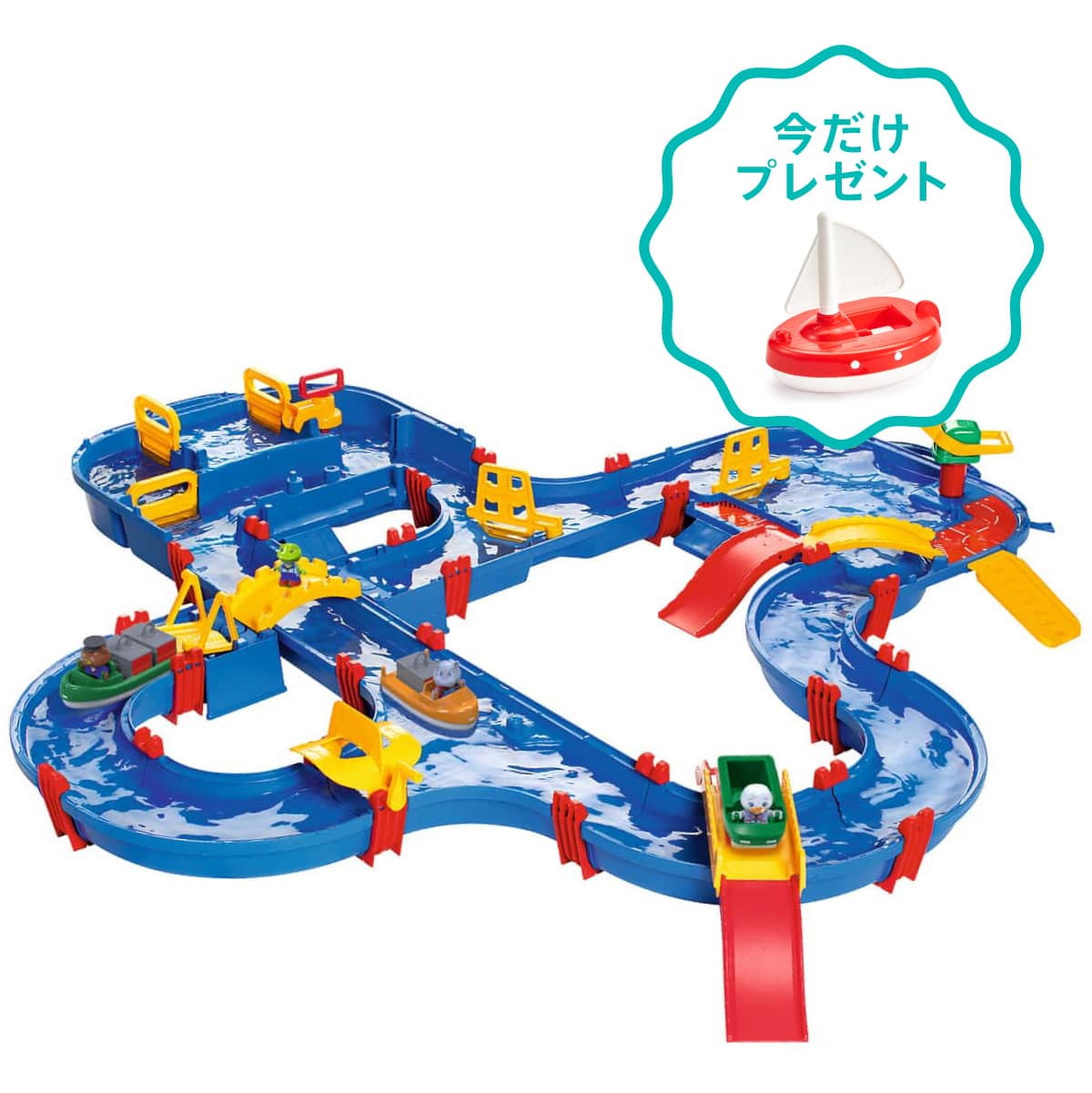 | セット内容 | 水路パーツ×12、コネクター×12、水門×3、パドル×1、クレーン×1、コンテナ×3、トラック×1、ボート×1、フェリー×1、ポンプ×1、橋(A)×1、橋(B)×1、橋ストレート×1、スロープ×1、ゲート×2、橋げた×1、大きな赤い橋×3、人形×4(かば、くま、カエル、アヒル)、ゴムシール×24、ステッカー×1、ケースを止める赤いパーツ×4、セールボート×1 |