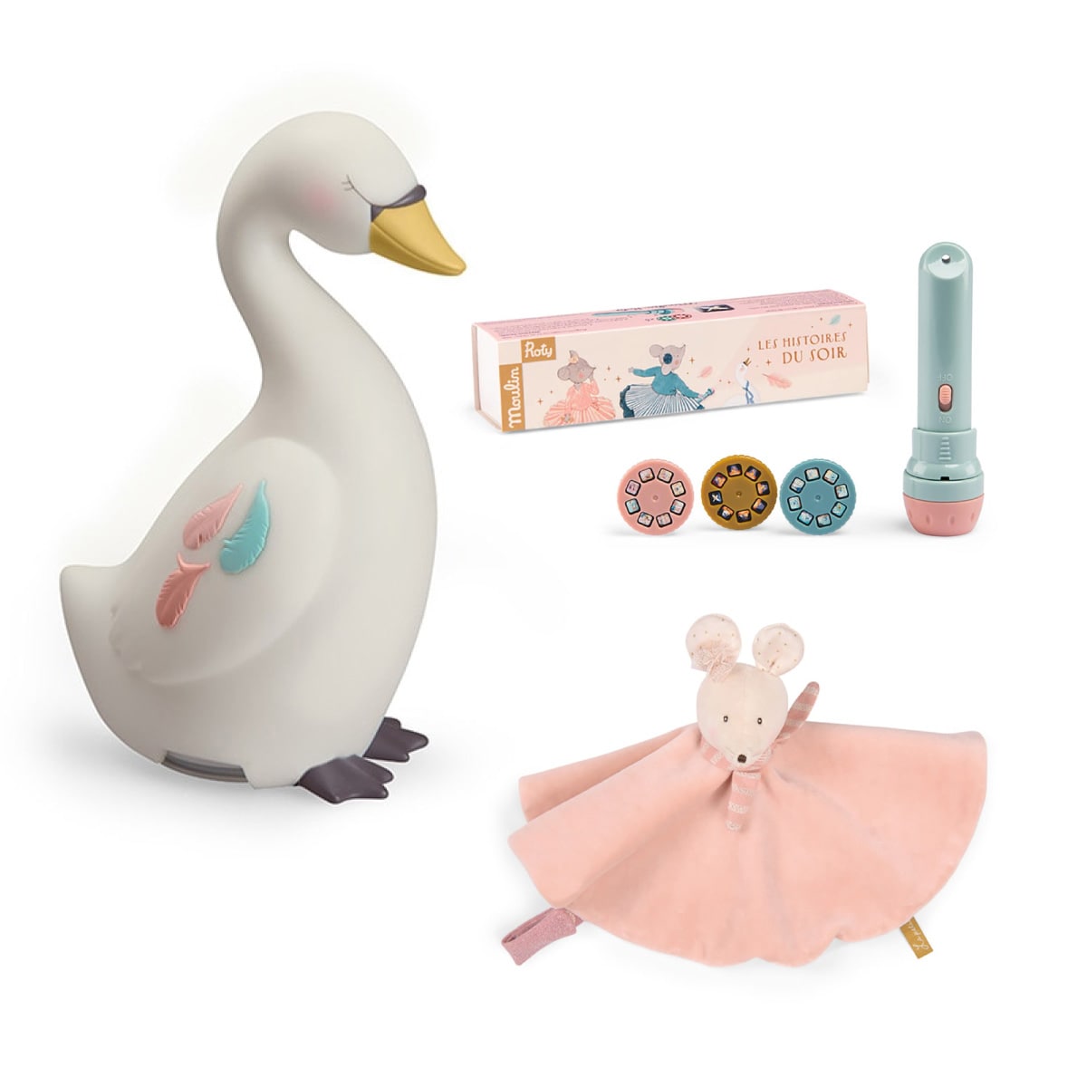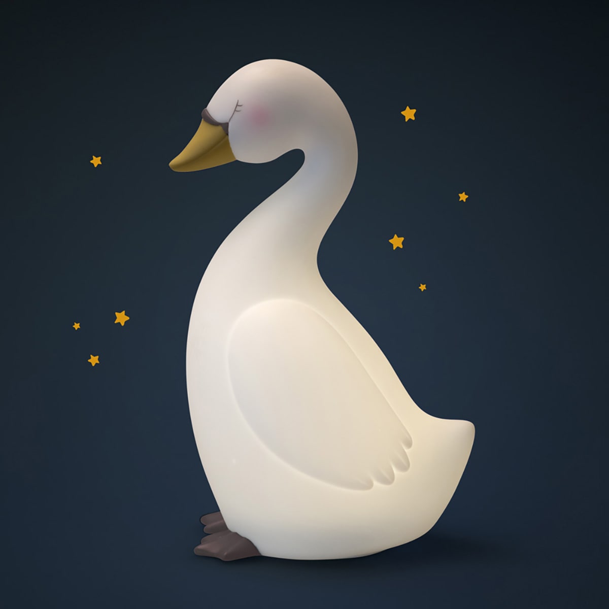 ロマンチックな白鳥のデザインの、シリコン製のベビーランプ。3段階の明るさ調整が可能で、眠る前から夜中の授乳時まで、そしてひとりで眠る練習にも活躍します。