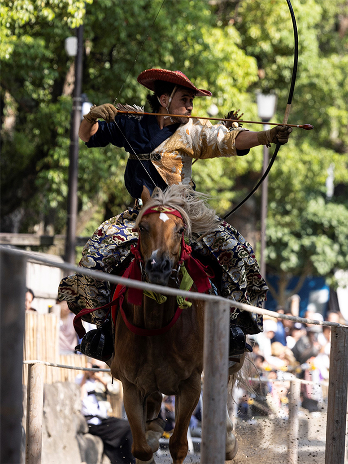 日光江戸村では、「弓馬術礼法小笠原流」の日光支教場として、流鏑馬(やぶさめ)用の馬場や弓道場を備えた施設を開設している