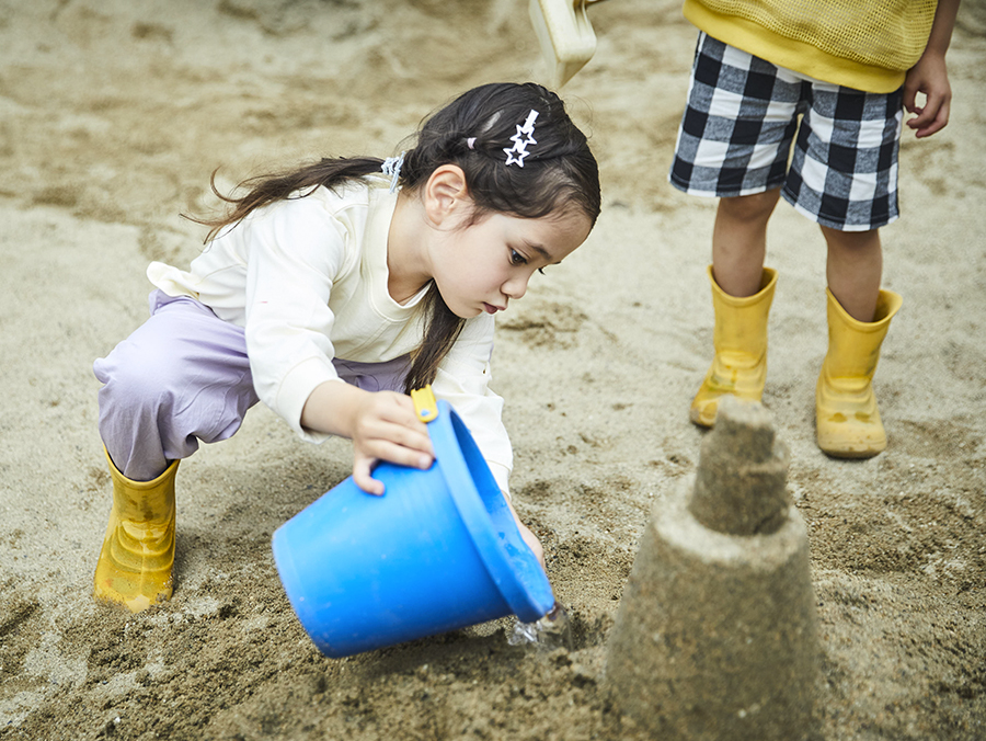 子ども達が夢中になれる経験をたくさん積み、成長する過程で自信や達成感を育んでいく。それはきっと、未来の幸せな人生につながる大切な基盤に。砂場で砂遊びに没頭するような、親子で一緒に夢中になれるかけがえのない時間を、子どもと育んでいきたいですね。