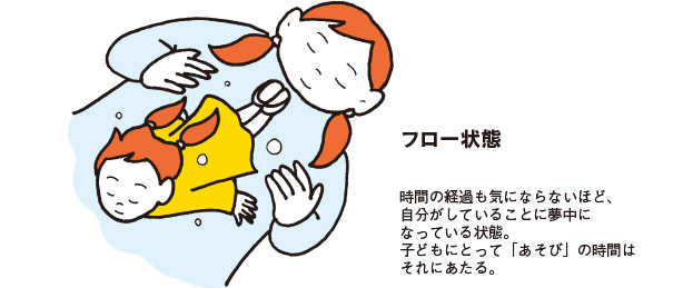 子どもが「わくわくと遊ぶこと」は、まさにこのフロー状態です。自分の内側から興味があふれ出るような没入体験があそびによって得られ、その体験が人生そのものの幸福度につながる。幼児期にその体験を多く重ねる