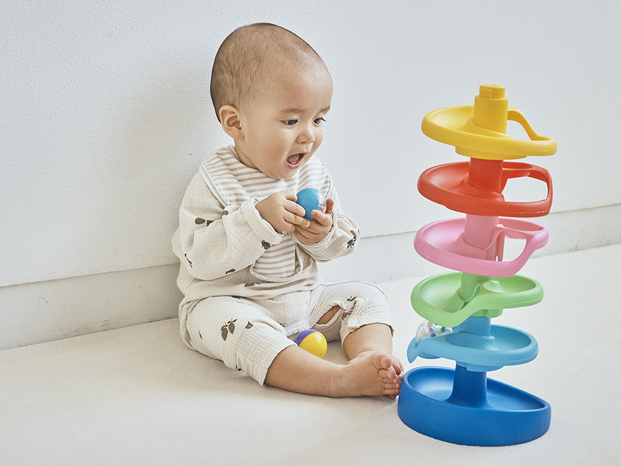 例えば「玉転がし」。何回も同じコースにボールを転がし続けるのを見て、何が楽しいのかなと不思議に感じたことがある親御さんも多いのでは?よく観察していると、ボールを少し違う場所に置いてみたり、何個も連続で転がしてみたり、毎回少しずつ違うトライを繰り返していることに気付かされます。