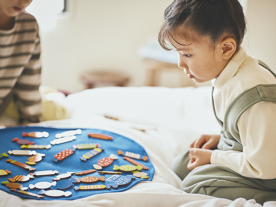 幼少期にあそびに集中することは、あらゆることへの習熟につながっています。最初は自分で動かすことさえできなかった指を、少しずつコントロールできるようになり、モノをつかめるようになったり。やがて図形や立体の認知までできるように。ほんの1〜2年で、ものすごい進化ですよね。あそびを繰り返していても、まったく同じことをしているわけではない。どんどんいろんなことを学んでいるわけです。そのなかで集中力もついていく。なぜこんなことに夢中に?と思うことがあっても、満足いくまでぜひ続けさせてあげてほしいです。