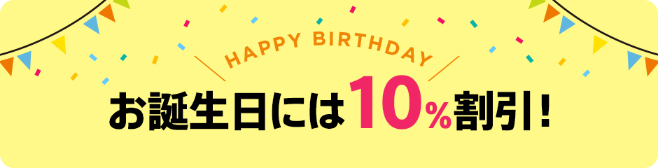 公式オンラインショップ会員またはLINE友だちにご登録、さらにお子さまのお誕生日をご登録いただくと、お誕生日の30日前後に公式オンラインショップの商品代金が10%割引になるクーポンをプレゼントいたします。