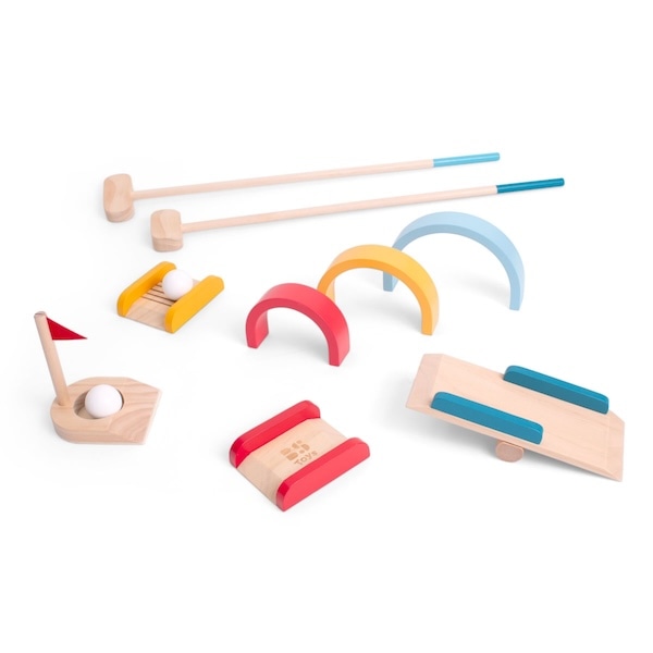 木製のゴルフセットで、ホールインワンの楽しさを!障害物をアレンジして、コースもルールも自由自在。家族みんなで夢中になって遊べます。