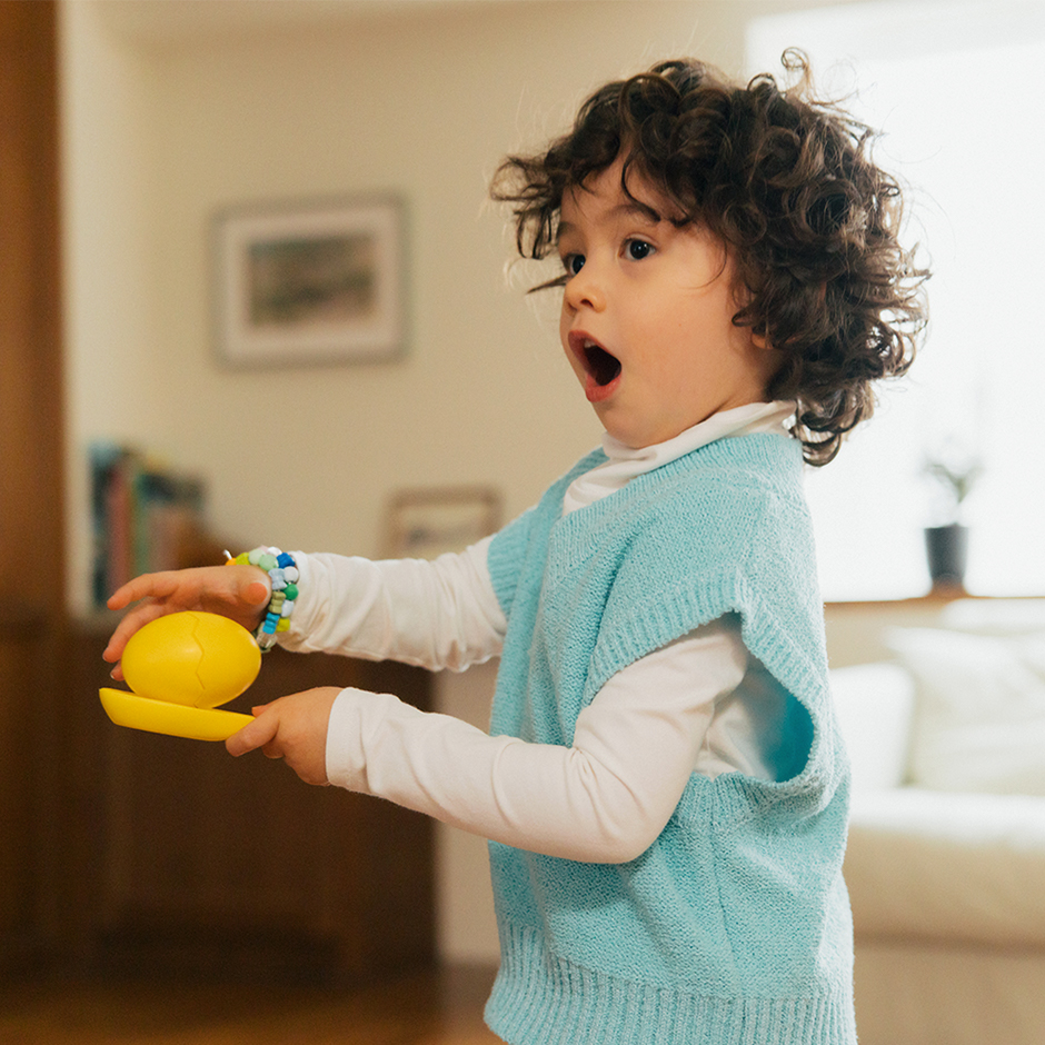 跳ぶのに合わせて、ぴょこぴょこ音もなるしかけが、もっともっと!とチャレンジしたい気持ちを後押しします。