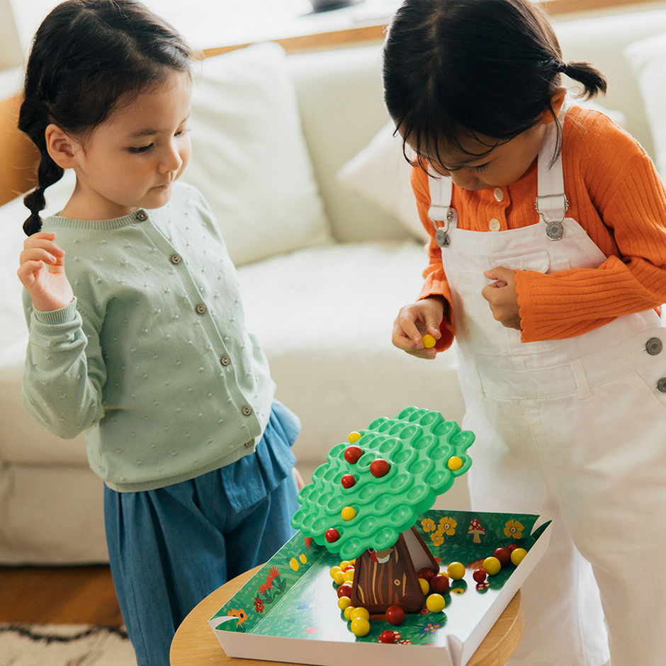 人数:1〜5人以上サイコロを3つ振って、出た色と同じキャンディーを探します。41個のキャンディーは、すべて色の組み合わせが違うから、3つの色を瞬時に見分けるのは、大人でも集中が必要。