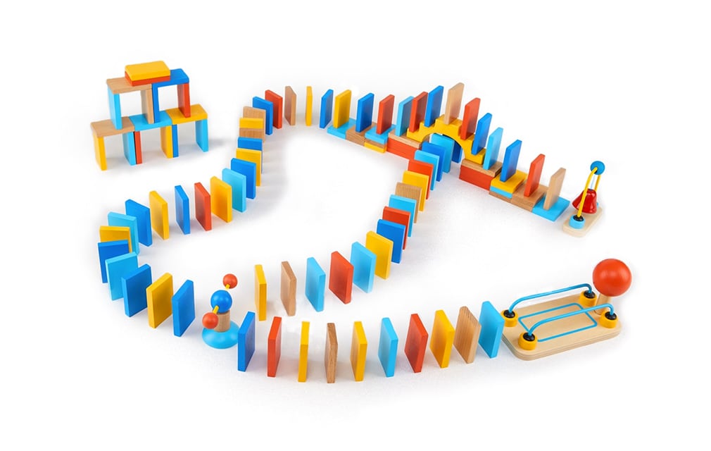 たっぷり100ピースと4種類の仕掛けを使って、コースを自由につくろう!おうちにあるものを組み合わせるのもおすすめです。「どう並べようか?」と家族で話し合うところから、あそびがはじまります。