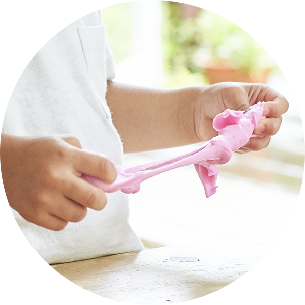 子どもたちは手からたくさんのことを学びます。また手をつなぎたかったりママの耳たぶを触ったりするのは、手のひらから感じる温かさややわらかな感触が心地よく、安心するからと言われています。かんてんネンドで体験できる感触あそびは、こんな親子のスキンシップに少し似ているかもしれません。