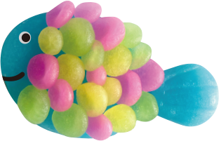 色玉同士を混ぜて、別の色を作ってみましょう。どんな色に変化するかな?途中のマーブル状態もきれいだね。絵の具のように色が混ざるので、色遊びを通して色彩感覚を育てます。