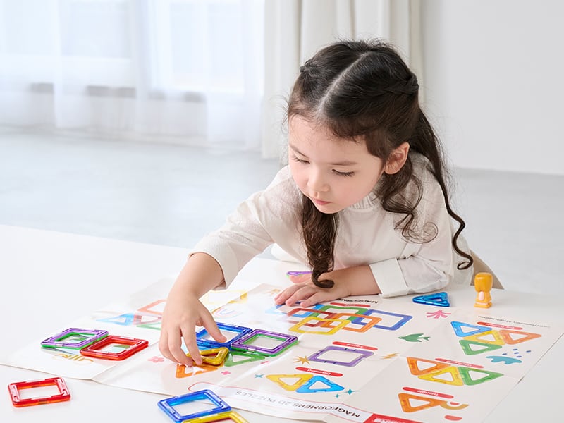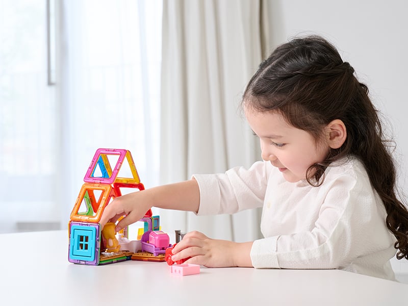 自分がつくったものを使って遊びたいのは、子どもが持つ自然な欲求です。このシリーズではマグ・フォーマーのピースを乗り物やお家の壁、床、天井などの構造体として使い、具体的なモチーフづくりを楽しめます。