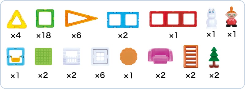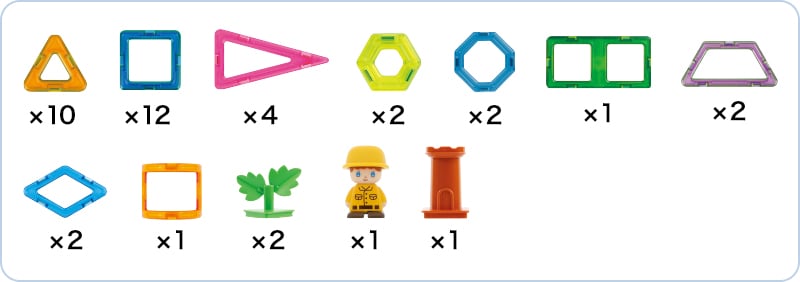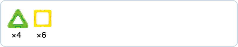 正三角形・正方形で構成遊びが楽しめる入門セット。ピース数が増えることで、はじめての立体づくりにもおすすめです。