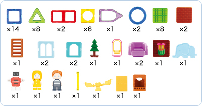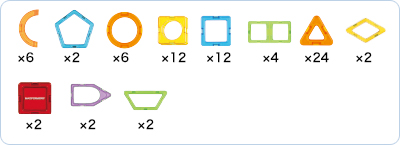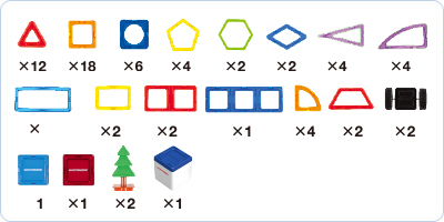 構成あそび、造形あそび、ごっこあそびまで。多彩な図形やパーツがそろって、