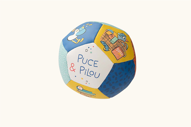 両手で握る頃から楽しめる布製のボール。柔らかなボールは赤ちゃんが手に取りやすく、当たっても痛くないので安心。すぐに使えるおしゃぶりタオルと組み合わせてプレゼントする方が多いアイテムです。