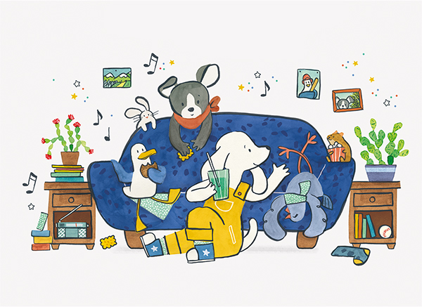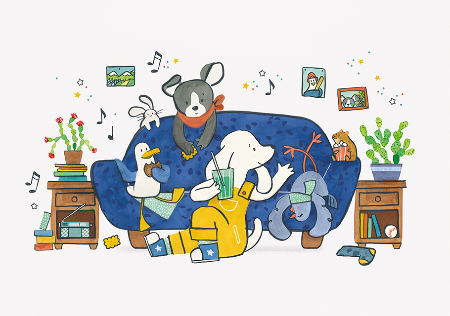 好奇心いっぱいの子犬ピルーと仲間たちが暮らす、パリのアパルトマン。おしゃべり好きなハトのミシェル、のんびり屋のハムスターのカカフェット、夢見るカモメのマルコ、やさしい子犬のピュスとの、楽しい共同生活。小さな出来事も、大きなハプニングも、笑い声に包まれ、毎日が宝物のように過ぎていきます。赤ちゃんを迎える日々も、それはきっと同じ。はじめての驚きに戸惑う瞬間も、心からうれしくなる瞬間も、誰かと分かち合えば、かけがえのない思い出に。ピルーたちの暮らしのように、互いの違いを楽しみ、支え合いながら新しい命と歩む時間を楽しんでという想いが込められています。