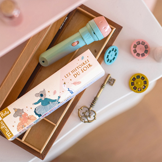 部屋を暗くして天井にフィルムを映し出します。絵柄をヒントにお話しを考えて、寝る前の親子タイムにぴったり。出産祝いを贈る時期は、赤ちゃんへの関心が高まるので、上の子へのプチギフトも喜ばれます。