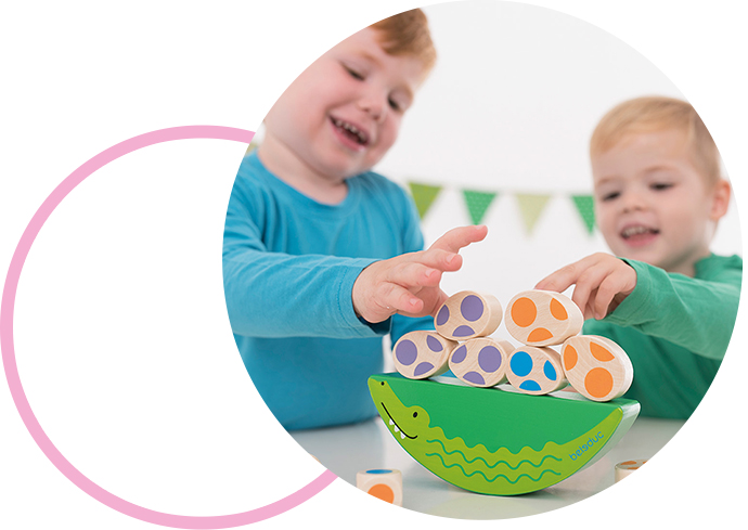 「これは同じ色だ!」「このピースを使うと顔が変わる」など、遊びながらルールや規則性を自ら発見していきます。こうした気づきは、識別力や認知力につながります。基本のルールが理解できたら、次は創作ルールを考え出すあそびも楽しいですよ。
