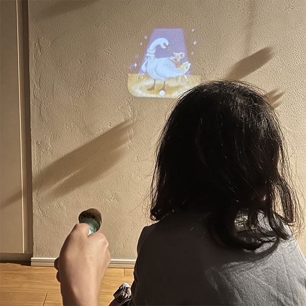 毎日子どもと寝る前に絵本の読み聞かせをするのが日課で(約9年続けています)1日の中で一番好きな時間です。我が家ではシネマライトは読みたい絵本がないときや、子どもが元気でまだまだ寝そうにないときに使用しています。天井に映して子どもと親で1画面ずつお話をつくって話したり、親→子どもの順番にお話を披露したり、使い方は様々。盛り上がり過ぎて寝れなくなることも笑。
